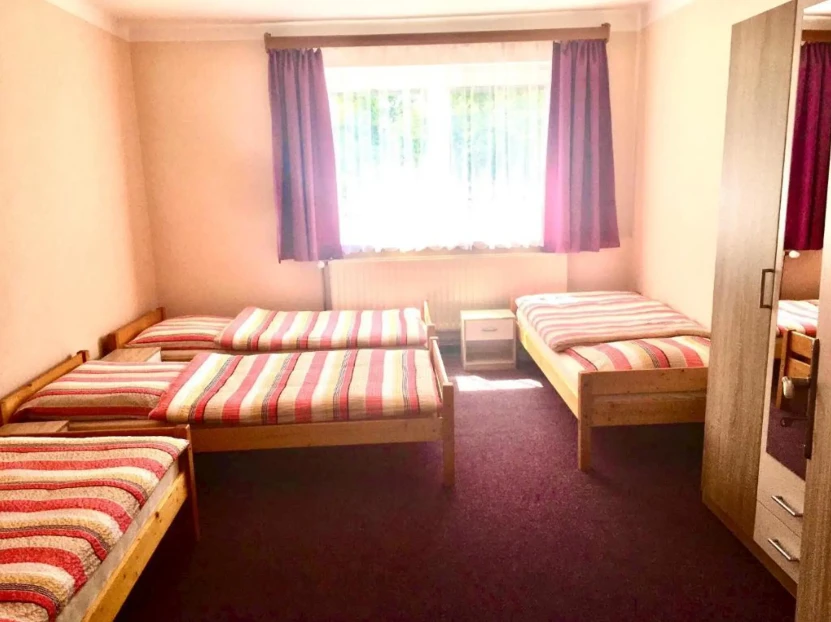 Ubytování je zajištěno v apartmánu s maximální kapacitou 10 lůžek, který se nachází v přízemí rodinného domu. K dispozici jsou dvě samostatné ložnice, každá se čtyřmi oddělenými lůžky, a další dvě lůžka na rozkládacím gauči ve společenské místnosti.