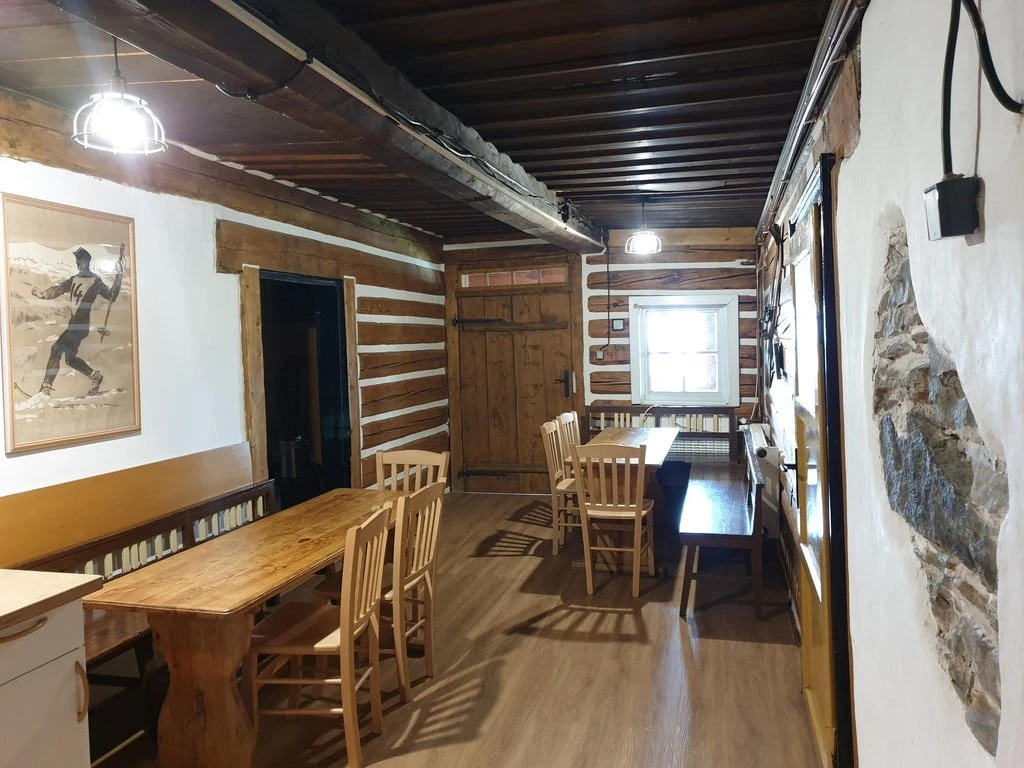 Horská chata nabízí příjemné ubytování s účelně zařízenými pokoji a společným sociálním zařízením.