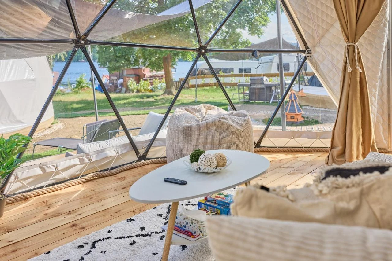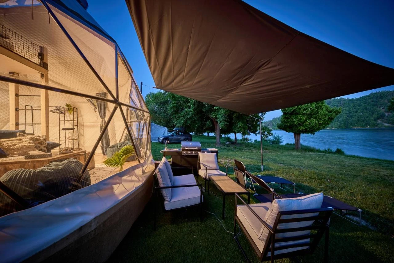 Luxusní glampingové stanoviště na břehu vodní nádrže Slapy