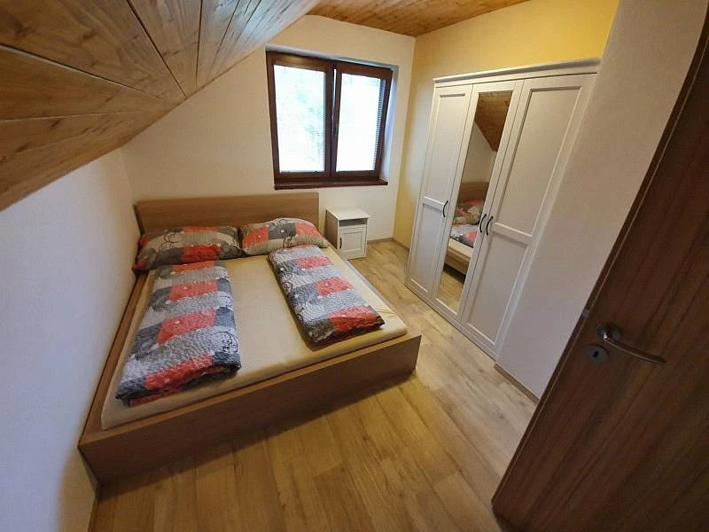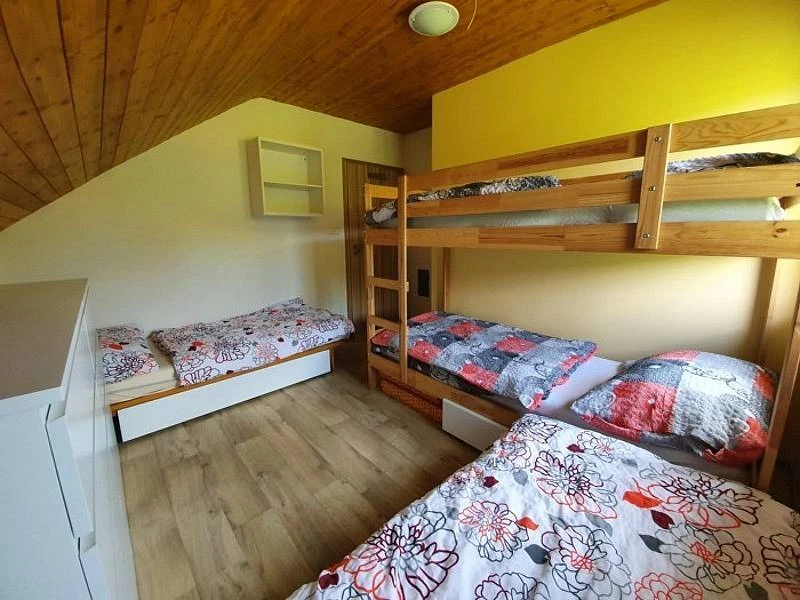 V chatě se může ubytovat celkem deset osob. K dispozici je tři ložnice, které nabízí osm lůžek, a obývací pokoj pro další dvě osoby. První ložnice má dvoulůžkovou postel a balkon. Druhá ložnice je vybavena patrovou postelí a dvěma jednolůžkovými postelemi. Třetí ložnice nabízí dvoulůžkovou postel. Ve všech pokojích je dostatek úložného prostoru. Další dvě lůžka jsou umístěna v obývacím pokoji na rozkládacím gauči, který se nachází v přízemí.
