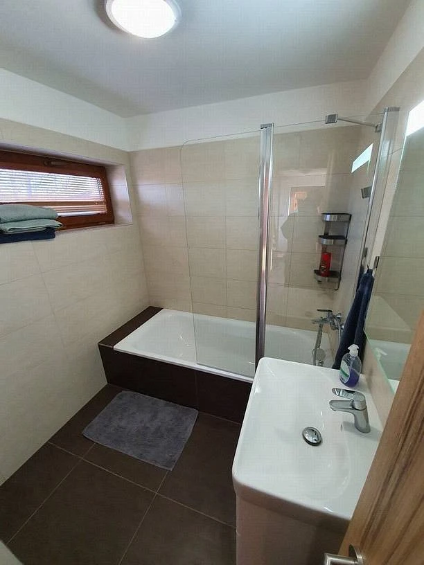V přízemí je toaleta a koupelna odděleně. V koupelně je vana se zástěnou na sprchování. V patře je druhá toaleta s umyvadlem.