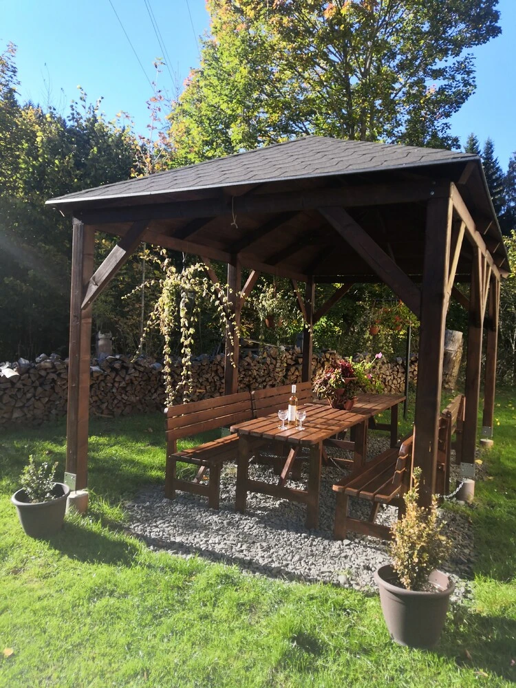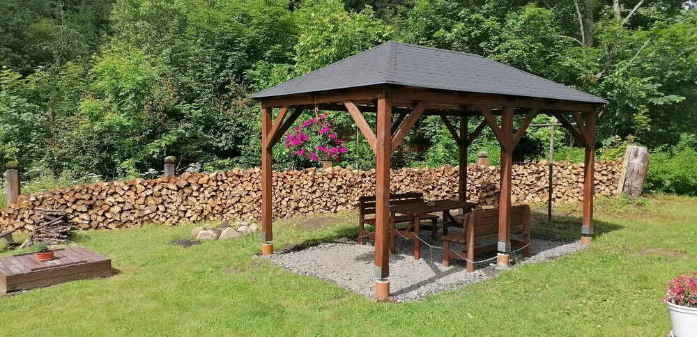 Chata je vybavena moderní kuchyní, velkou společenskou místností s krbem, a nabízí celkem čtyři sociální zařízení. Na rozlehlé zahradě najdete pergolu, gril a krb, což je perfektní pro venkovní posezení a grilování. Pro děti je k dispozici bezpečný prostor pro hraní.