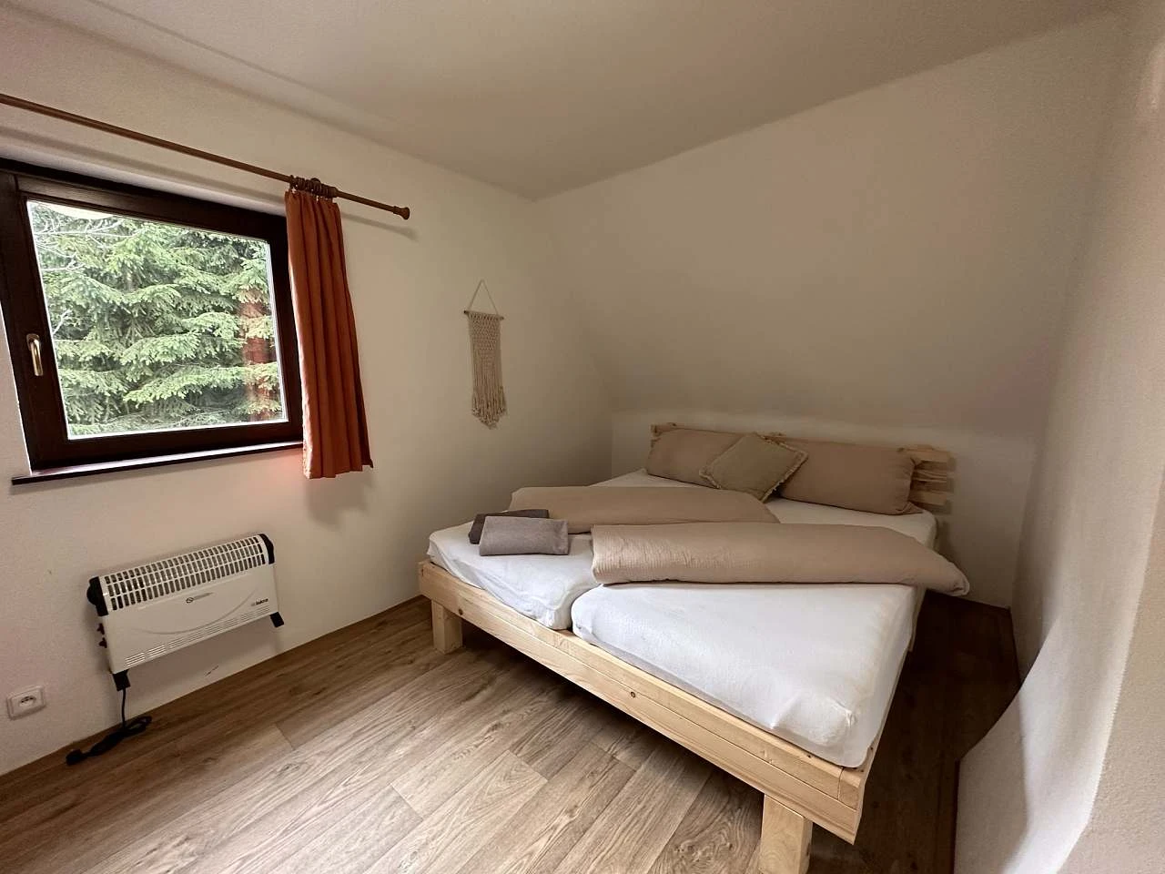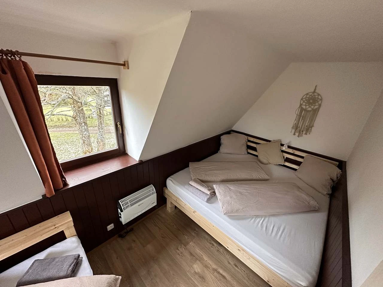 Chalupa k pronájmu poskytuje komfortní ubytování pro 8 osob ve 3 ložnicích.