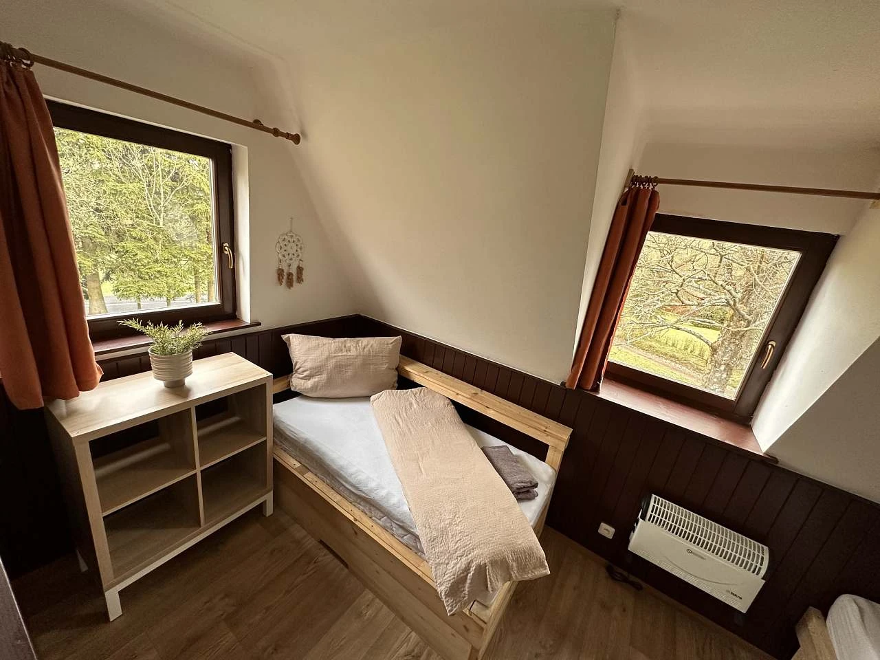 - Pokoj č. 1: Manželská postel pro 2 osoby + menší lůžko 160 cm s možností rozšíření na 2x160 cm.