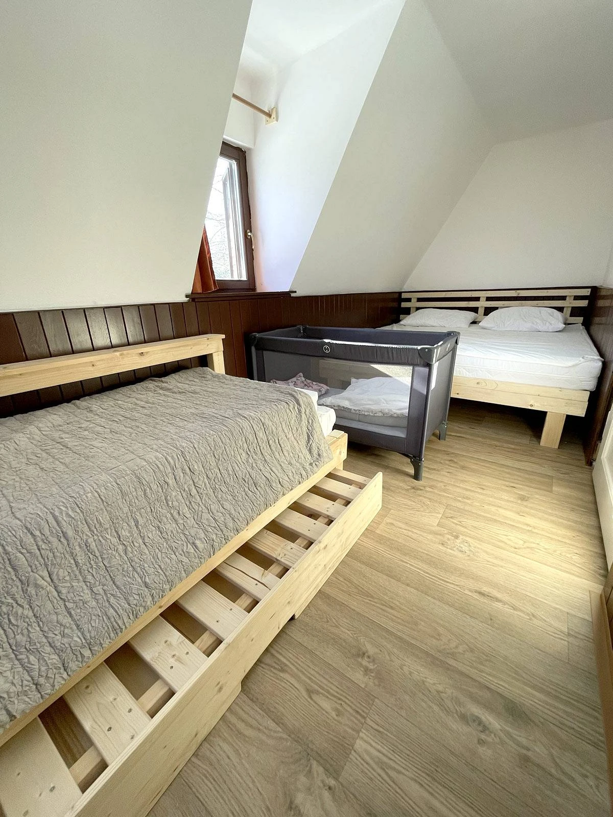 Podkroví: Pokoje jsou vybavené lůžkovinami, možnost přistýlky a k dispozici je i dětská postýlka.