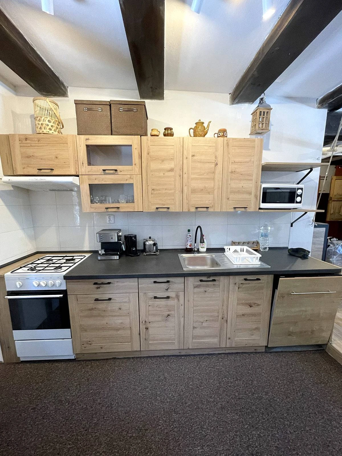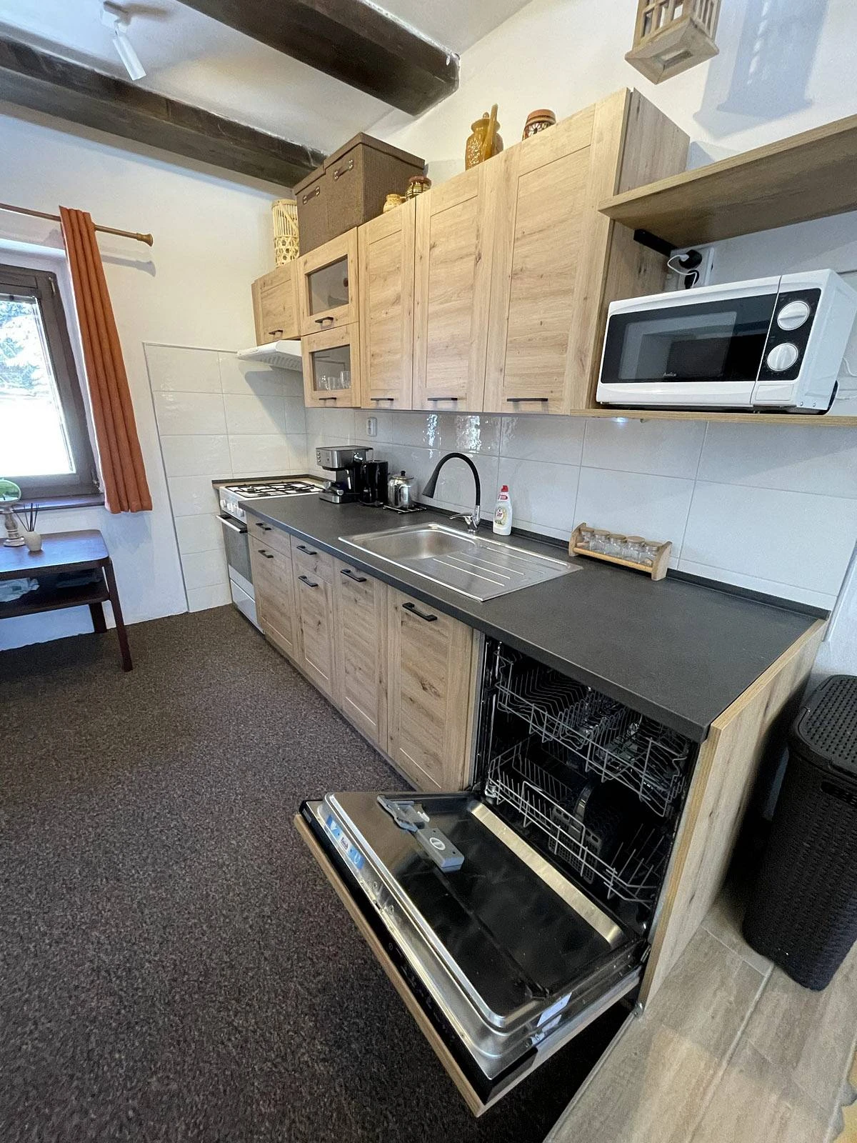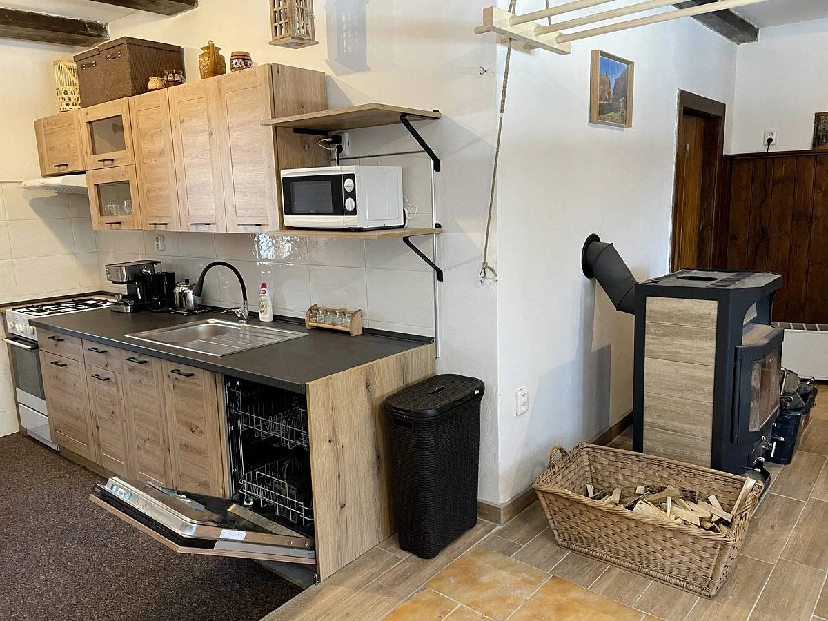 Kuchyně: Kompletně vybavená kuchyňská linka, včetně veškerého nádobí pro vaření i stolování. K dispozici je myčka, lednice, sporák, mikrovlnná trouba, kávovar a elektrická konvice.