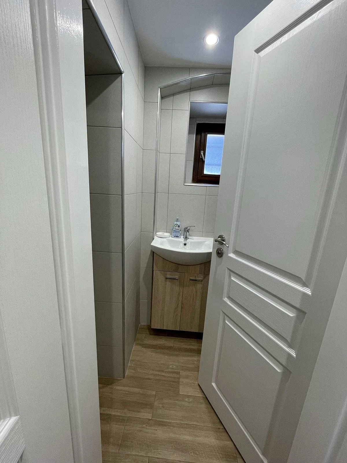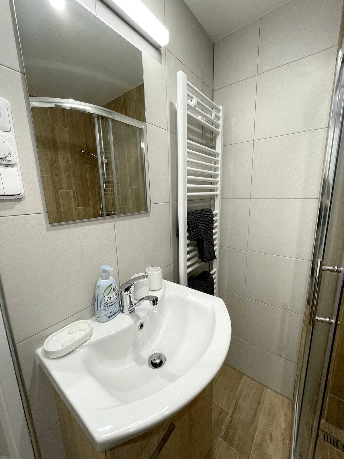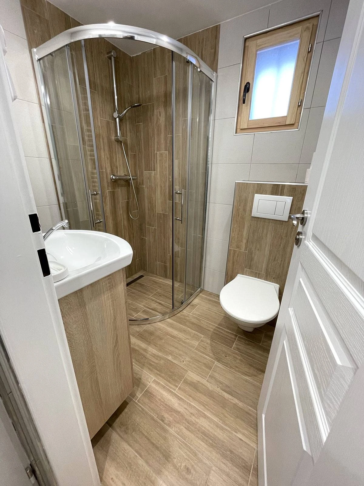 V přízemí je k dispozici sprchový kout s WC a umyvadlem plus samostatné WC s umyvadlem.