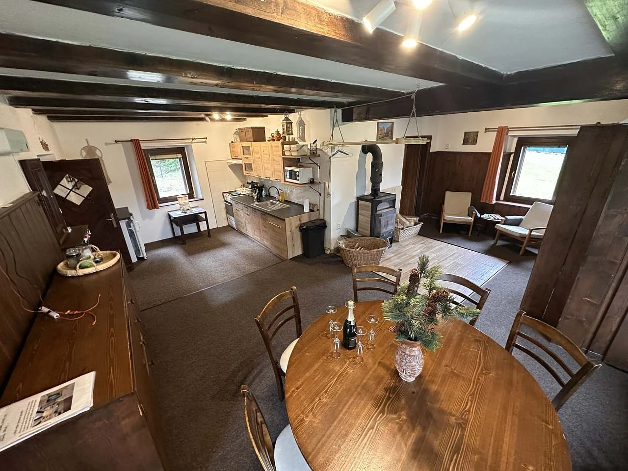 Provoz celoroční. Vytápění dřevem v krbových kamnech, přitápění el. přímotopy. Dřevo a voda v ceně pobytu. V ceně pobytu není elektřina. Cena elektřiny 300,-Kč/noc.