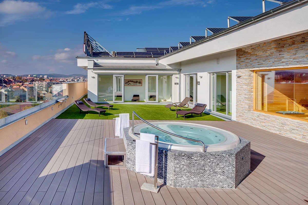 - vířivka na střeše hotelu pro ubytované hosty ZDARMA