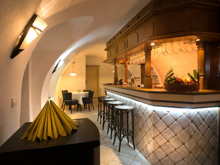 Stylová hotelová restaurace nabízí příjemné posezení a široký výběr jídel domácí české kuchyně.
