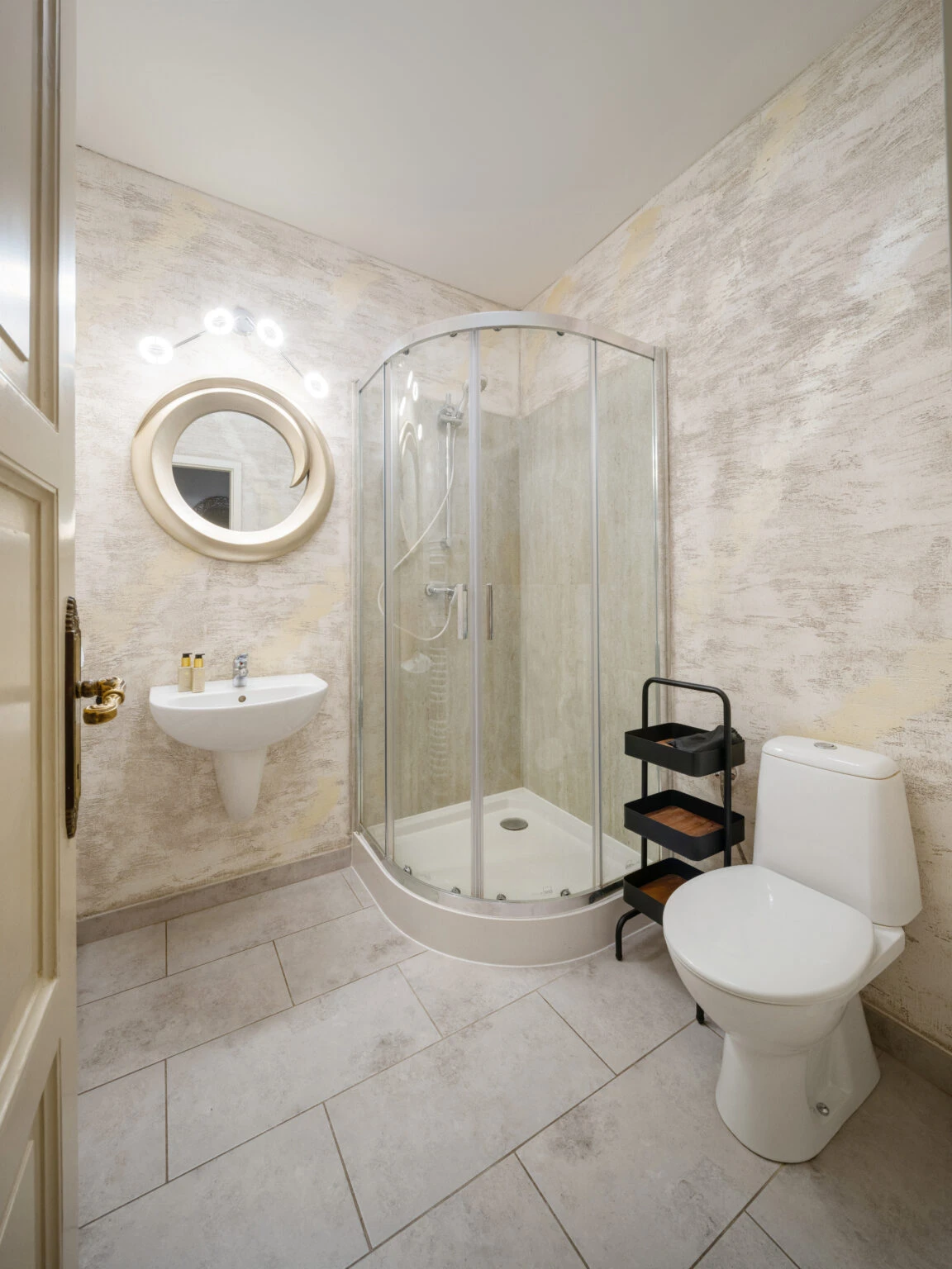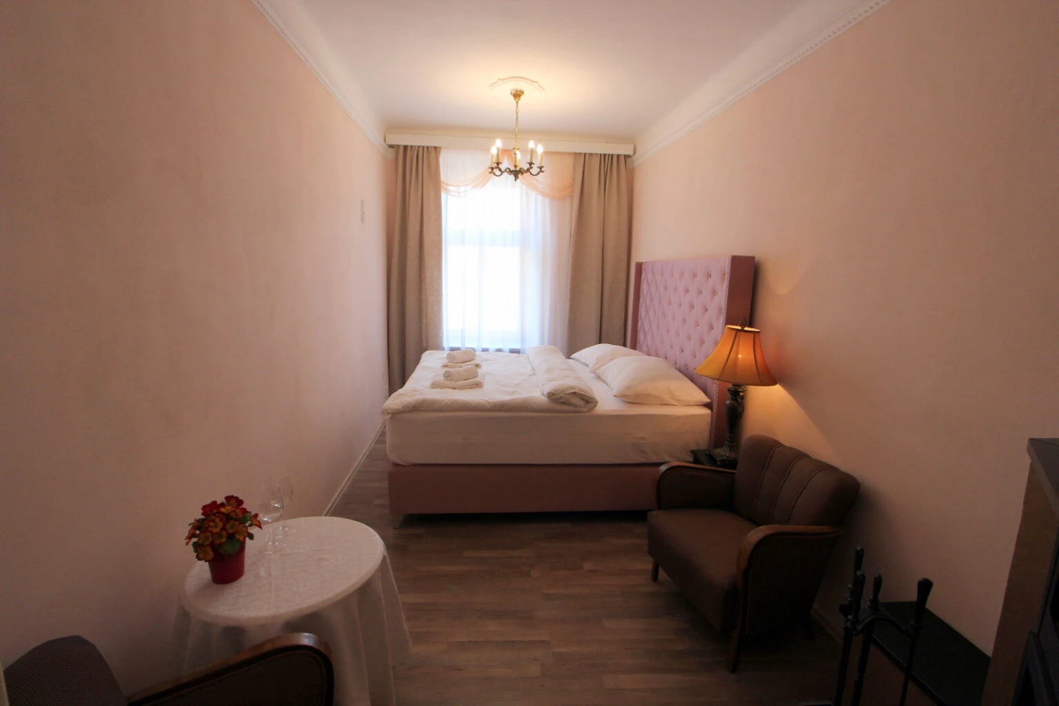 Nabízí 19 pokojů různých typů, od jednolůžkových až po luxusní apartmány, jako je Ludvík Apartment s rohovou vířivkou nebo Castle Apartment s krbem. Všechny pokoje jsou vybaveny Wi-Fi, TV/SAT a soukromou koupelnou, přičemž snídaně je zahrnuta v ceně.