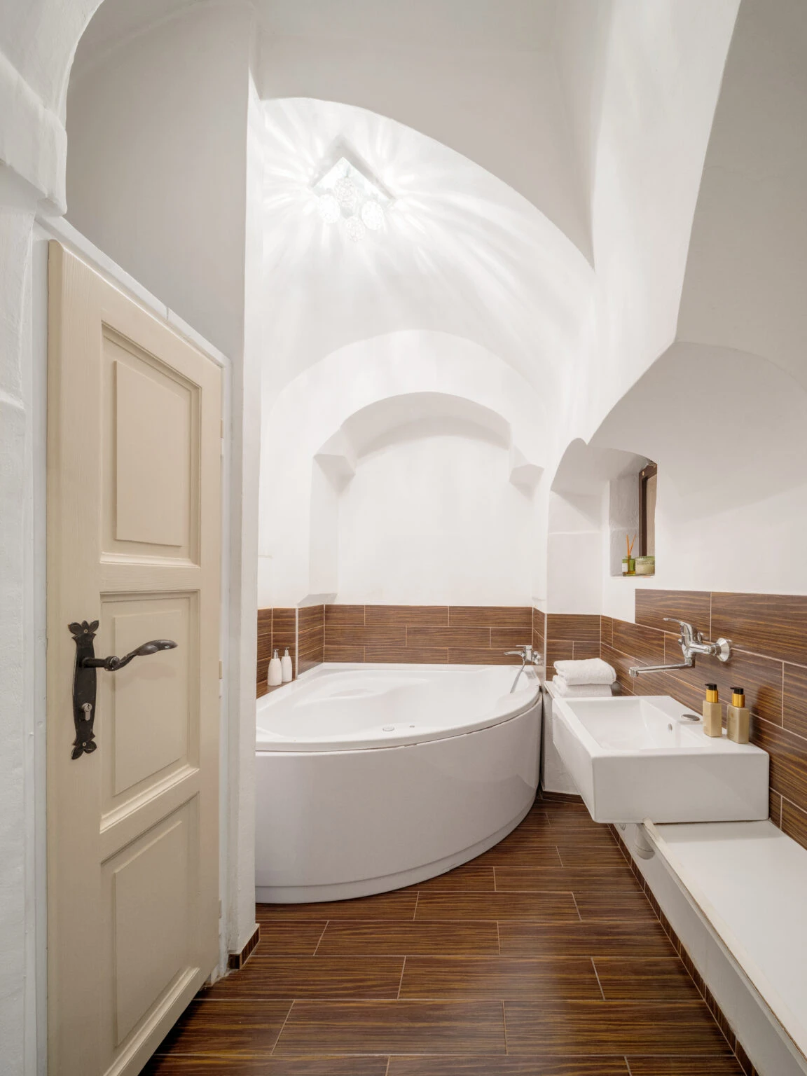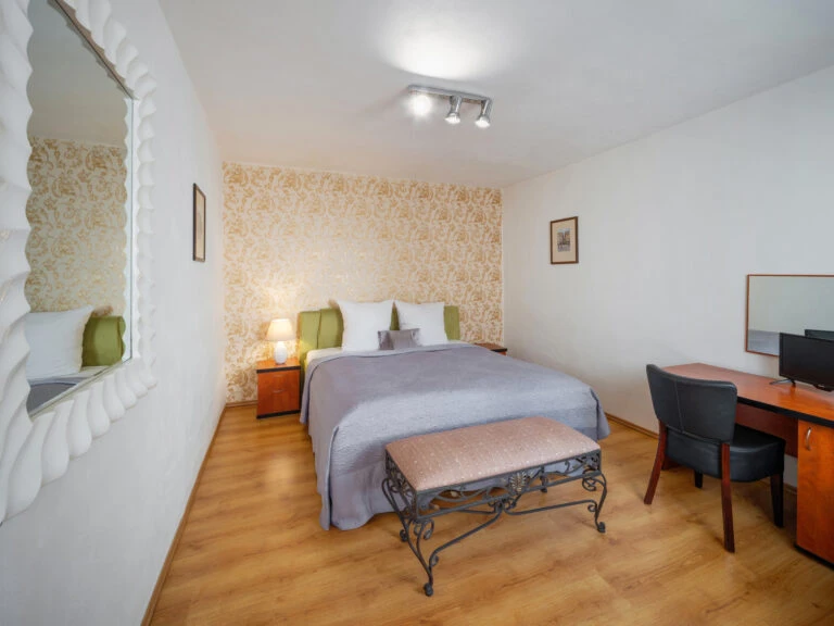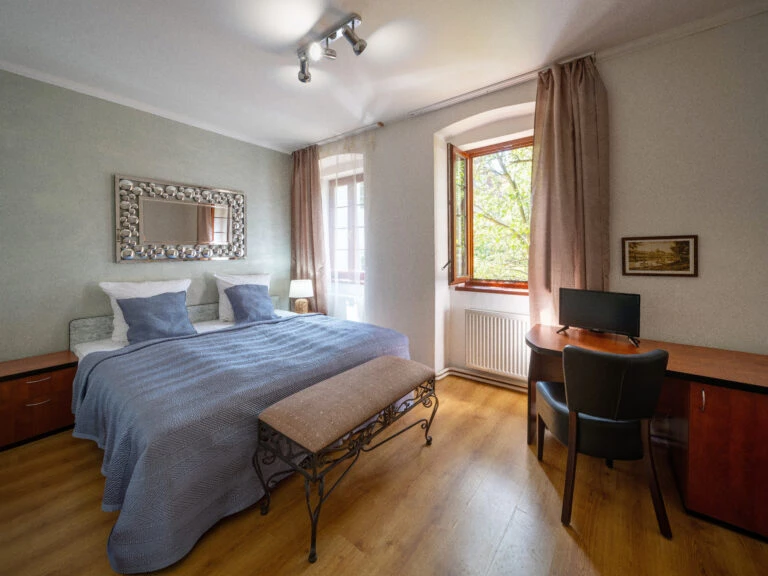 - Vybavení: Wi-Fi, TV/SAT, manželská postel, rohová vířivá vana, pracovní stůl, luxusní vybavení, snídaně v ceně.