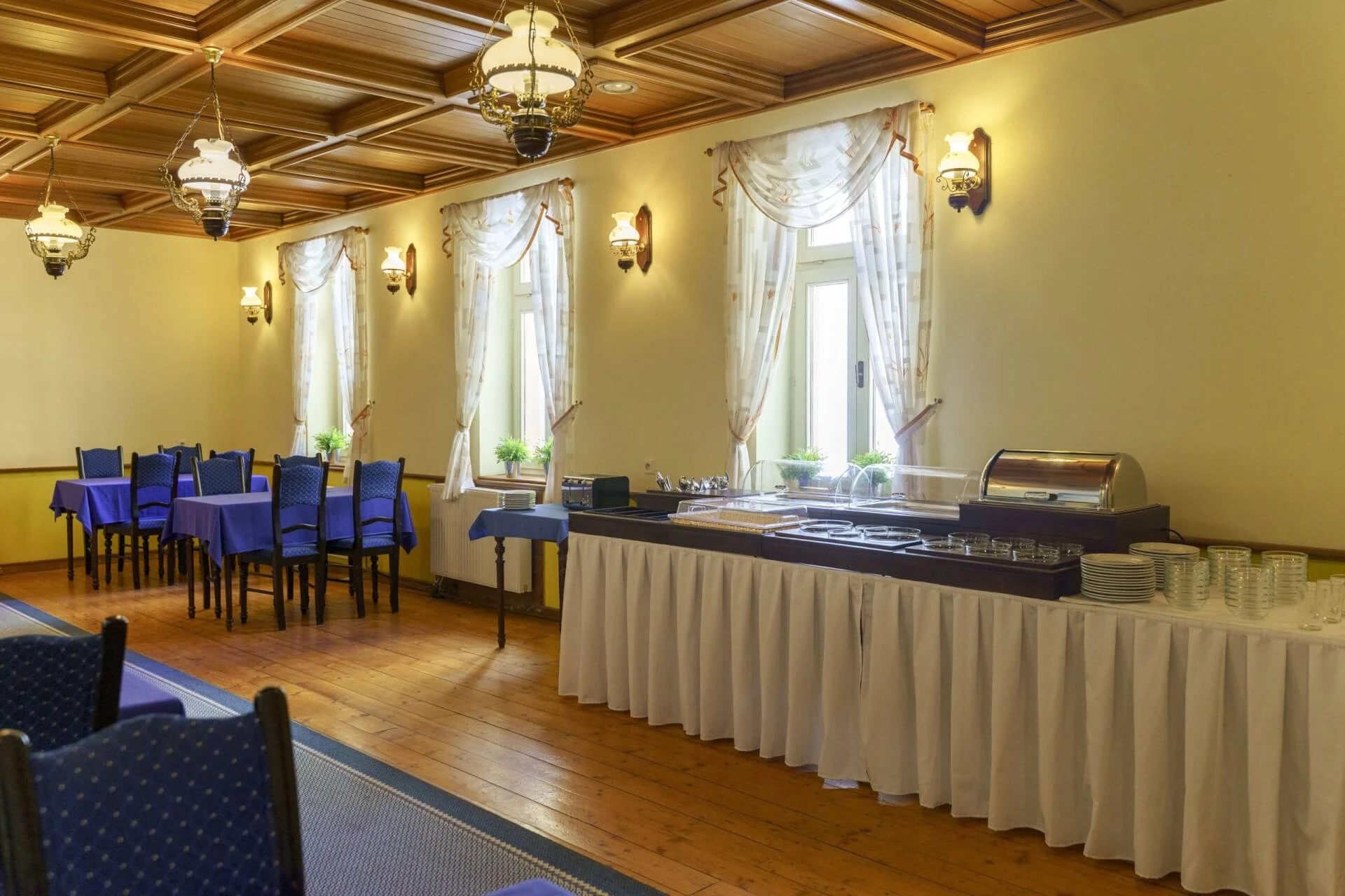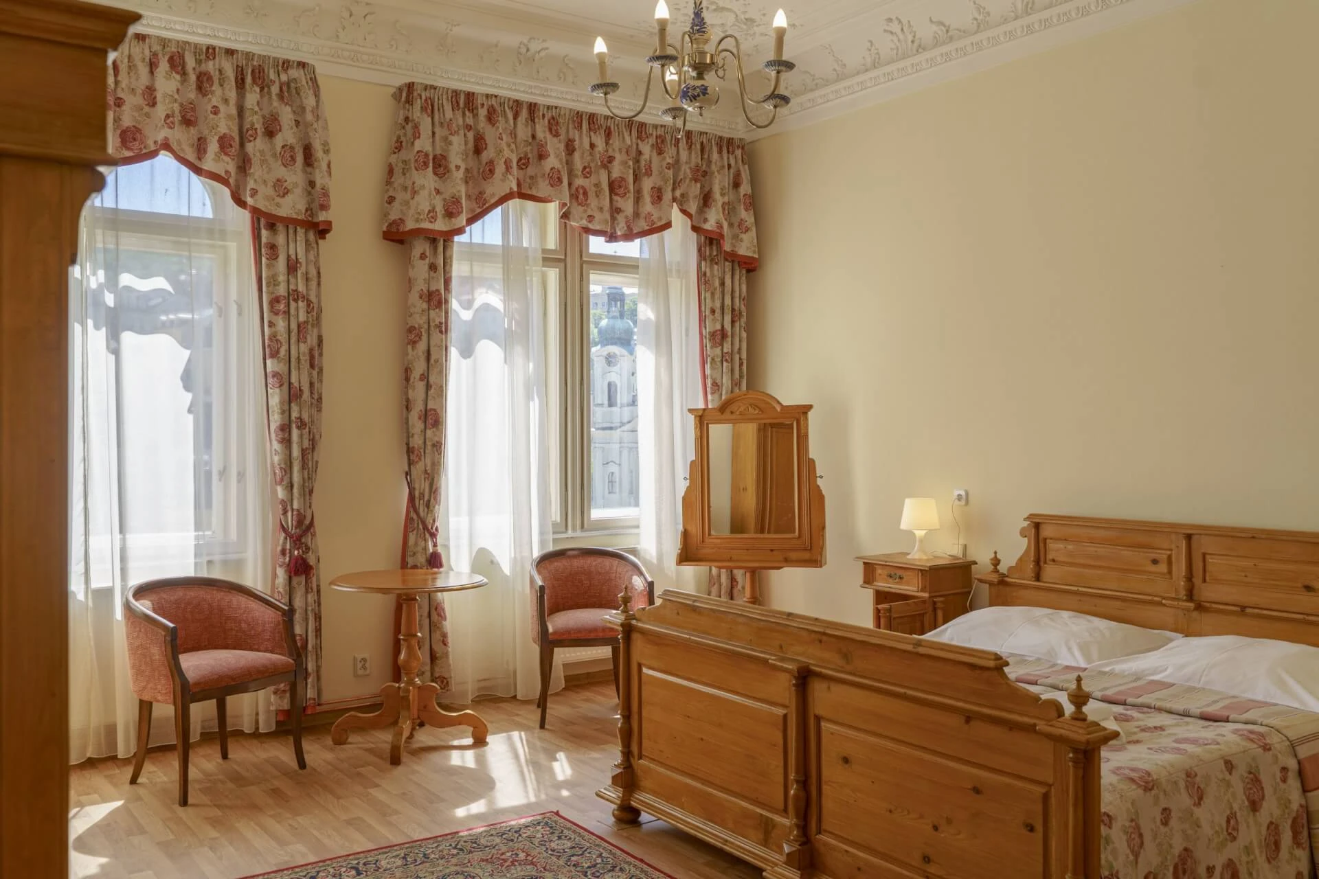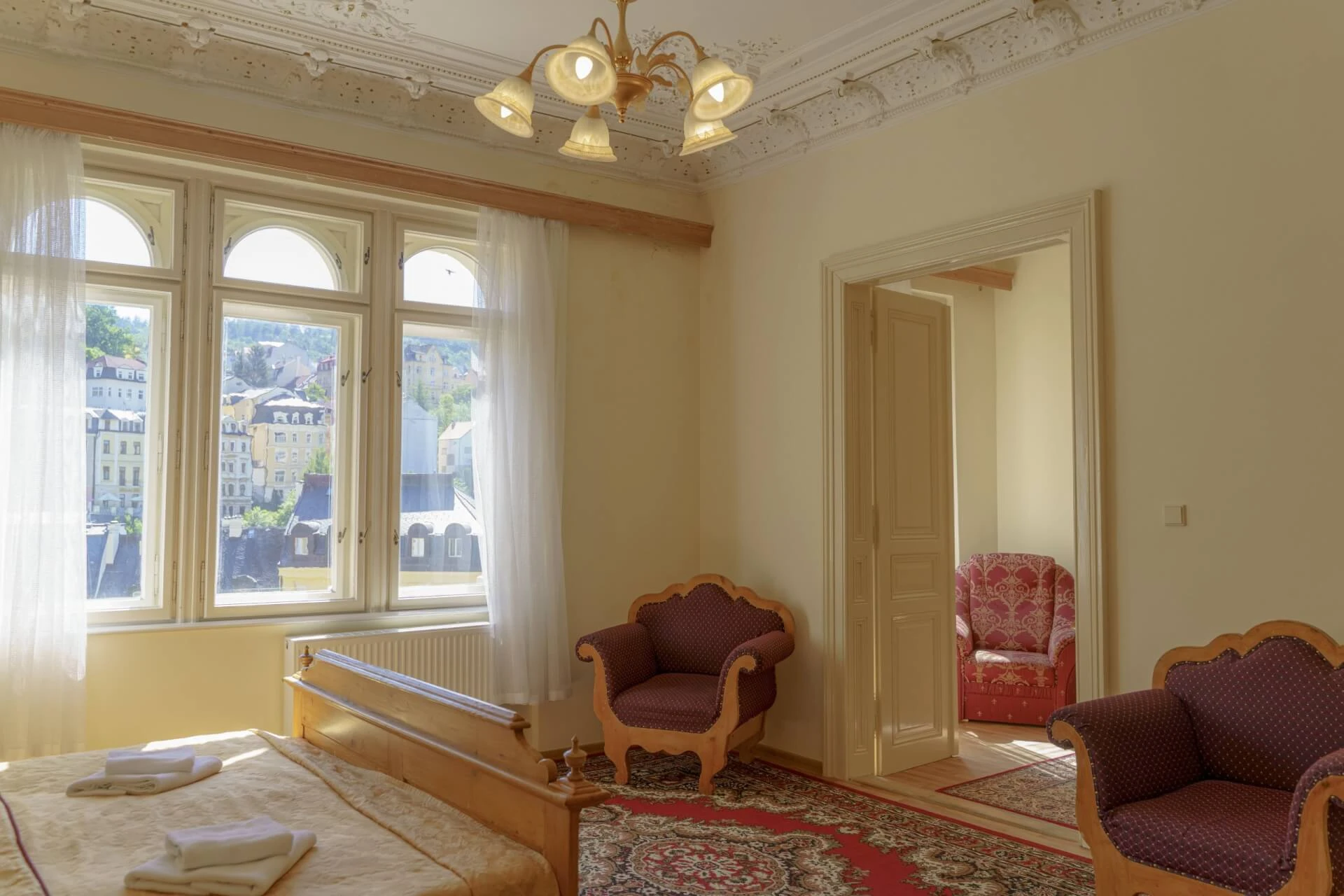Hotel Heluan nabízí ubytování v prostorných, příjemně zařízených a konfortních pokojích s vyzdobenými štuky stropy v kombinaci s masivními rámy oken a dveří. Ve všech pokojích je k dispozici mini. lednička, káva, čaj, psací stůl, smart TV a Wi-Fi připojení. Koupelny jsou vybavené ručníky, čistí vlasy a kosmetickým přípravky. Pokoje v přední části hotelu nabízí nádherný výhled na naše lázeňské město. Hotelová restaurace poskytuje kontinentální styl teplé i studené snídaně formou švédských stolů. Jedním z unikátních a nostalgických rysů našeho hotelu je malý, ale plně funkční výtah.
