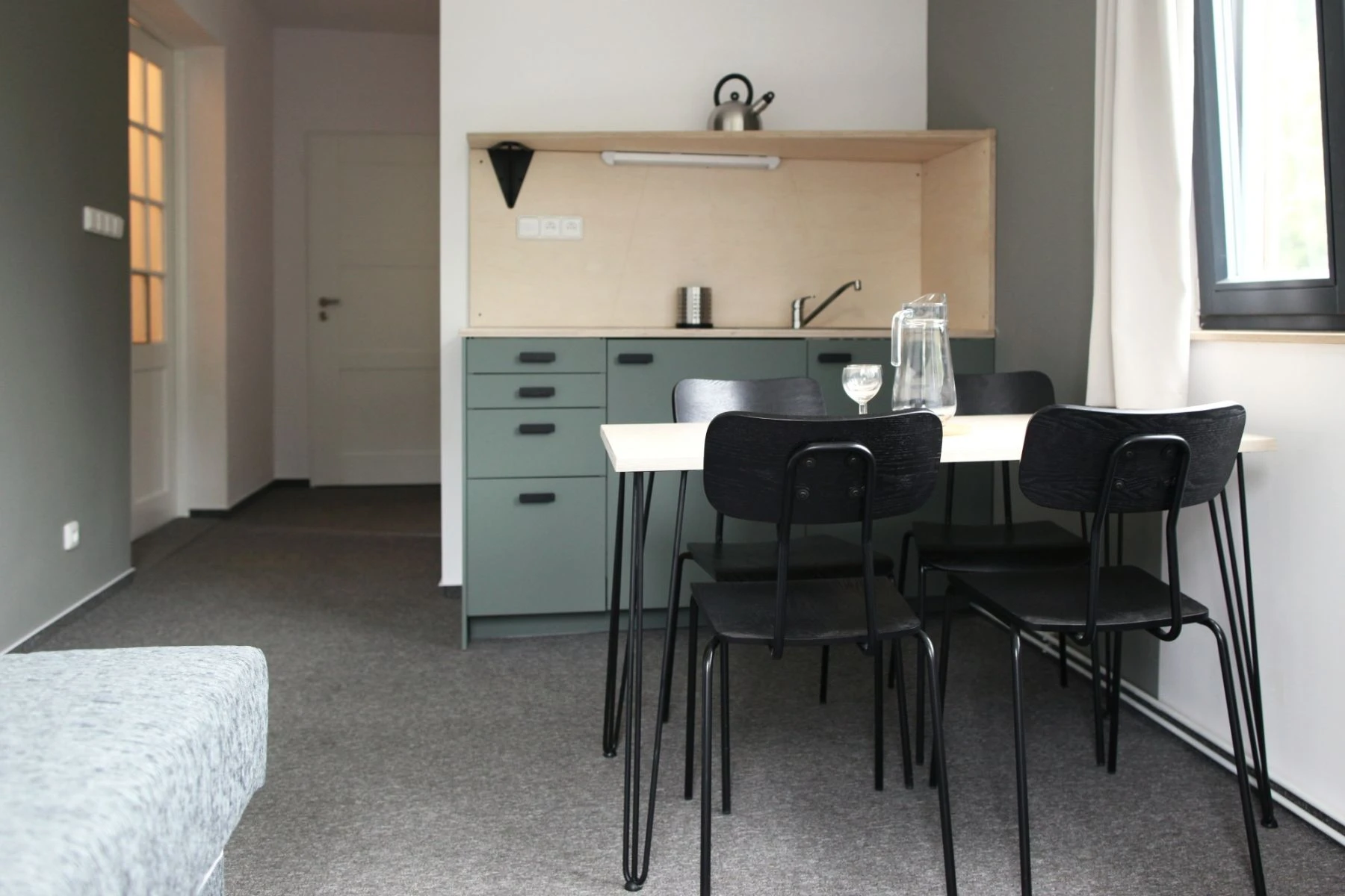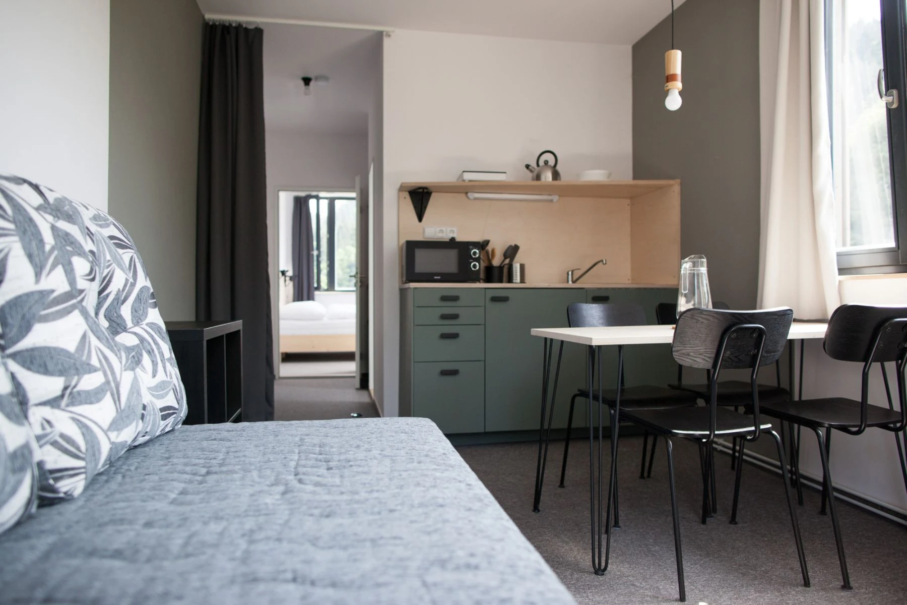Apartmán s koupelnou a s kuchyňským koutem, 4 lůžka (manželská postel a 2x jednolůžko)