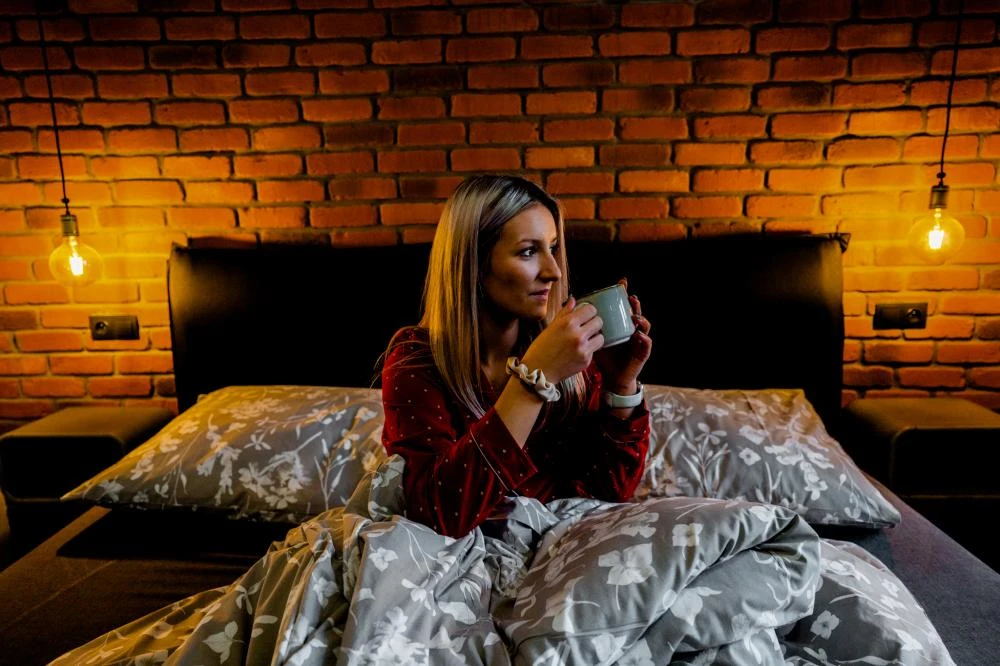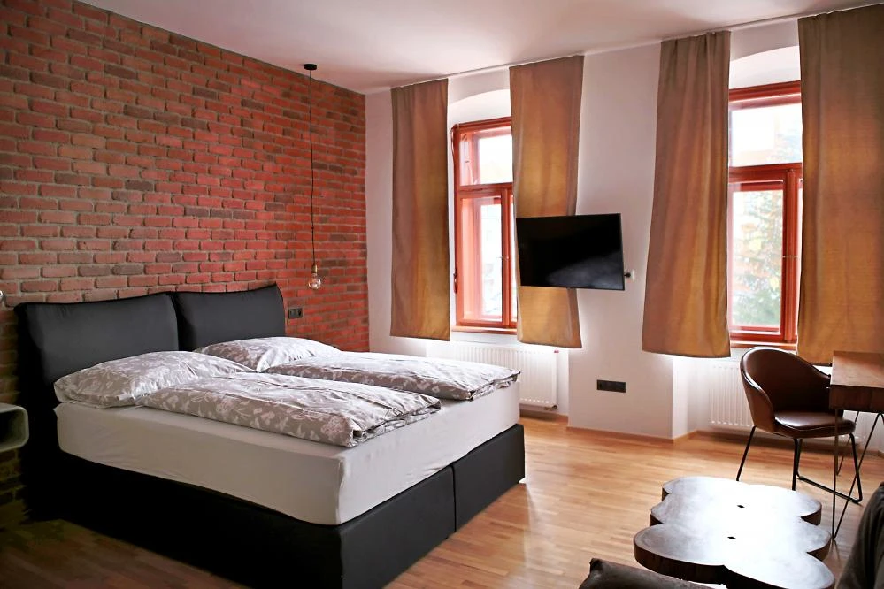 SPI – Dokonalý spánek díky kvalitním boxspring postelím, které zajišťují maximální komfort. Každý pokoj je moderně zařízen a nabízí elegantní design s přírodními prvky dřeva, cihel a betonu.