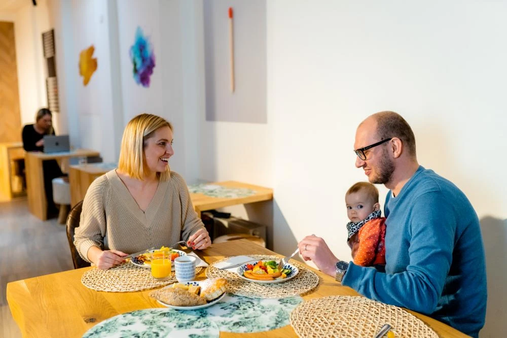 Snídaně jsou v ceně ubytování a podávají se formou bohatého bufetu s důrazem na lokální suroviny. Ubytování je vhodné jak pro jednotlivce a páry, tak pro rodiny s dětmi či skupiny přátel. Pokoje jsou vybaveny SMART TV, WiFi, kávovarem, koupelnou se sprchovým koutem nebo vanou. Některé pokoje nabízejí možnost přistýlky.