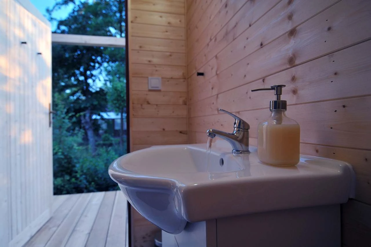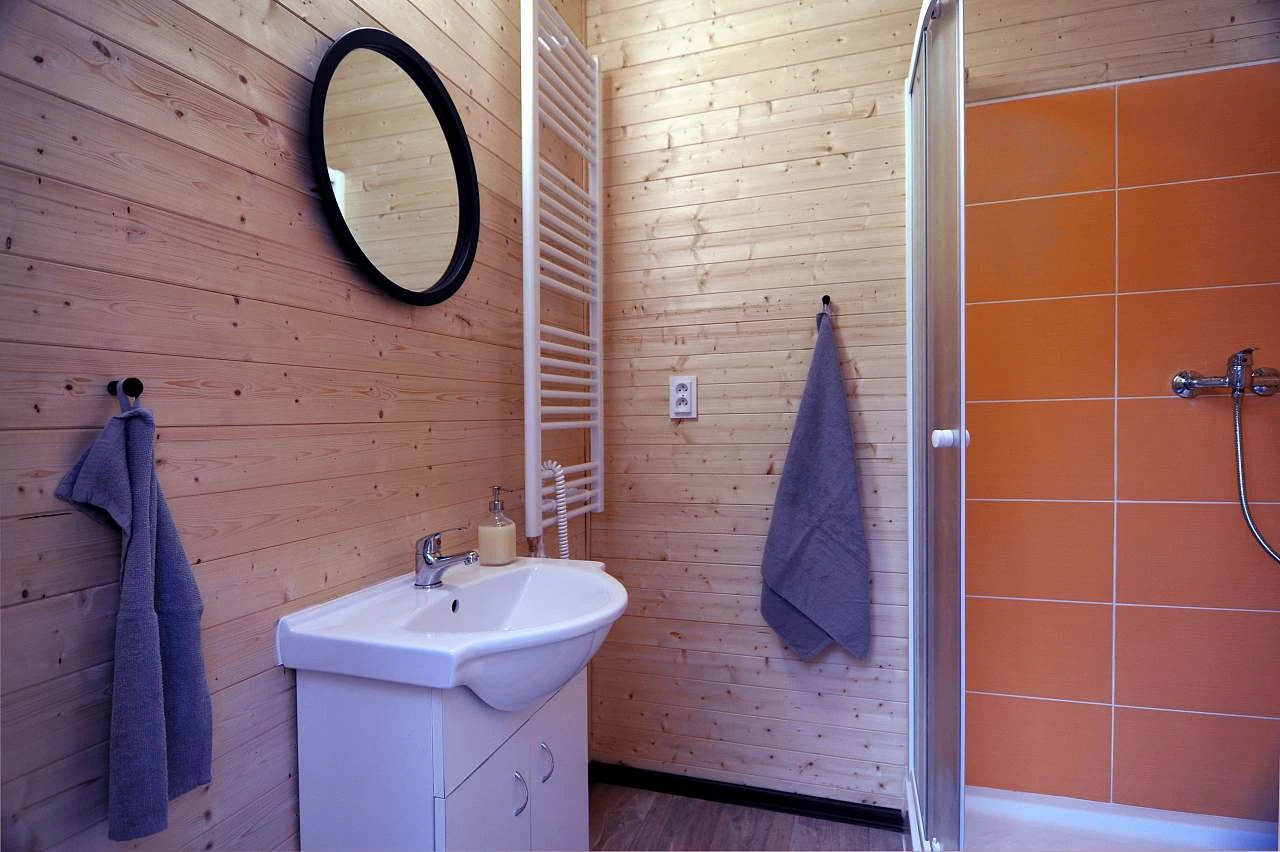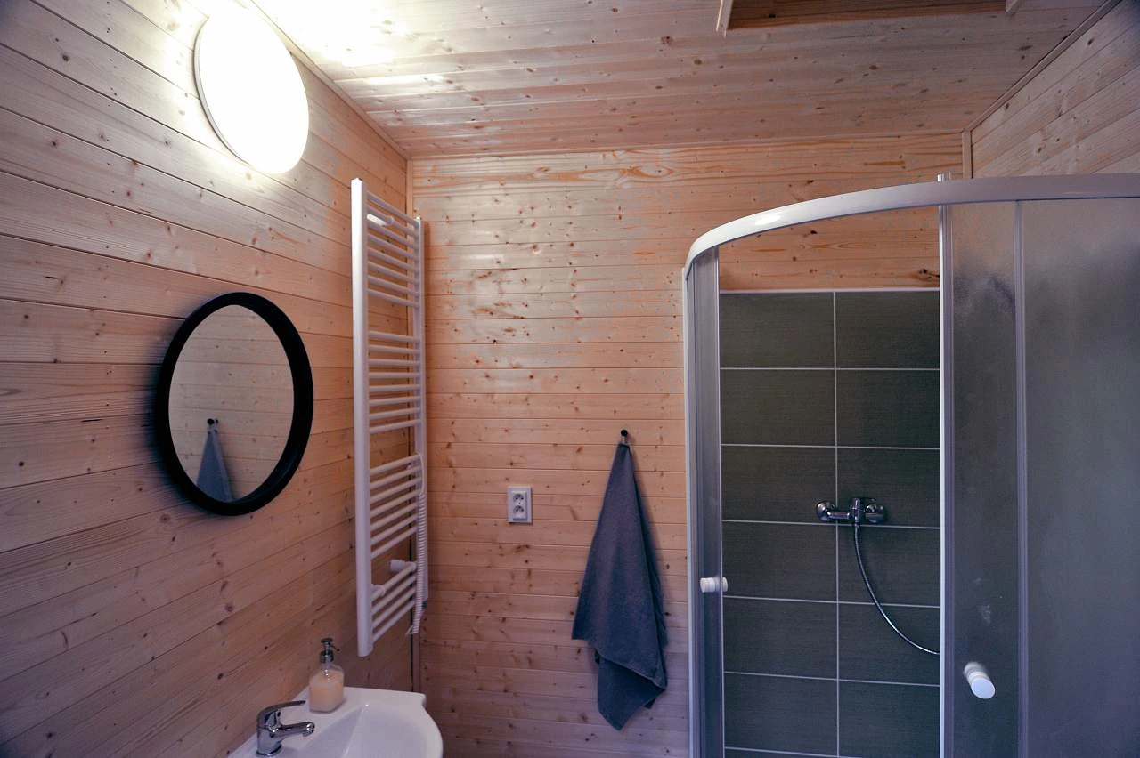 Hosté mají k dispozici pět samostatných koupelen, které jsou vybavené prostorným sprchovým koutem, umyvadlem a splachovací toaletou. Každá koupelna má zrcadlo, odpadkový koš, elektrické zásuvky, topení a sušák na ručníky, stejně jako toaletní papír a dávkovač na mýdlo.