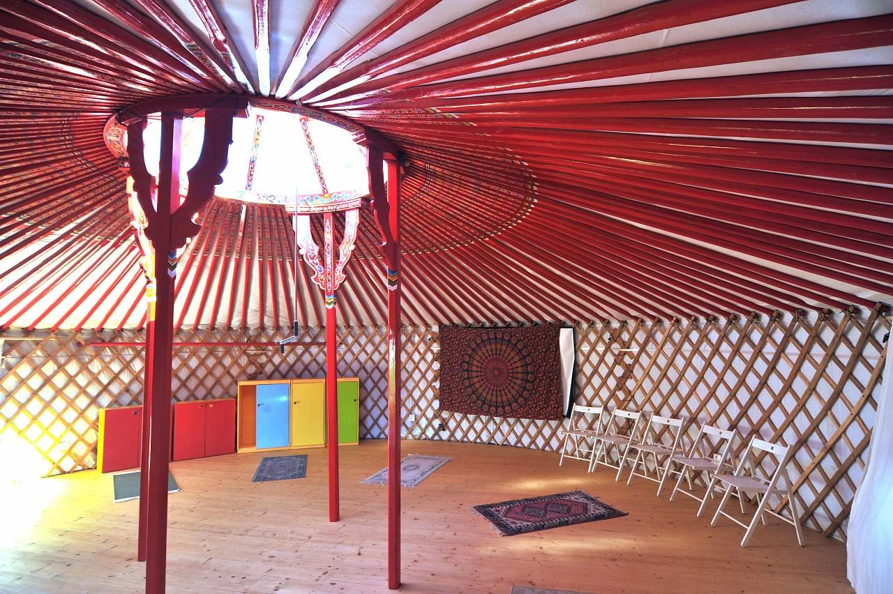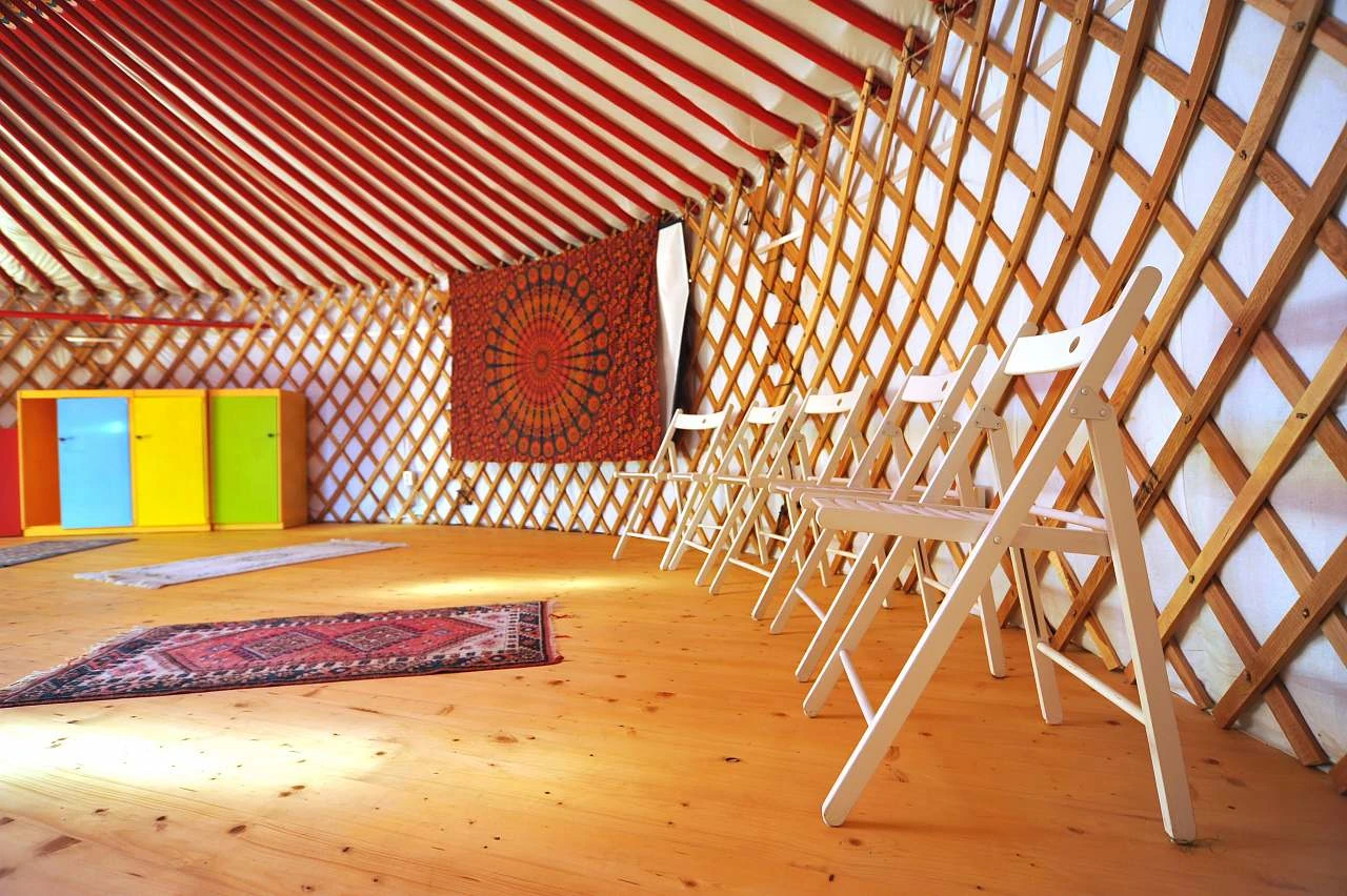 Jurty v Sadu jsou skvělou volbou také pro firemní akce, jógové semináře nebo teambuildingové aktivity. Velká královská jurta slouží jako prostor pro různé semináře a kurzy.