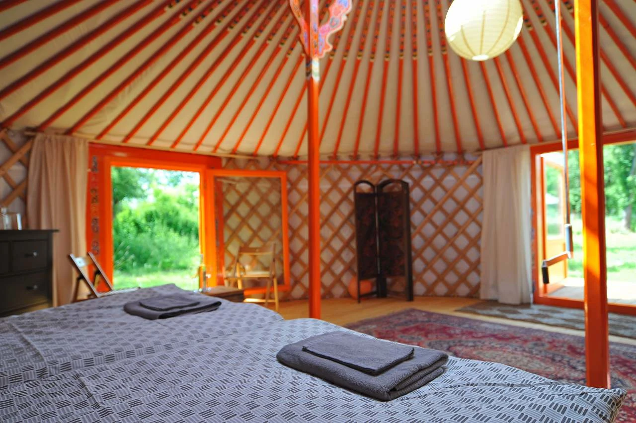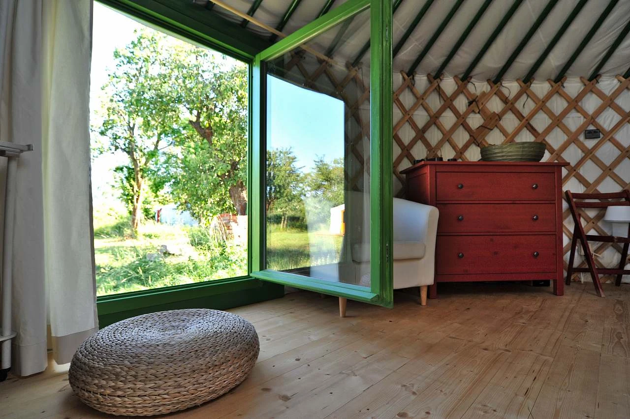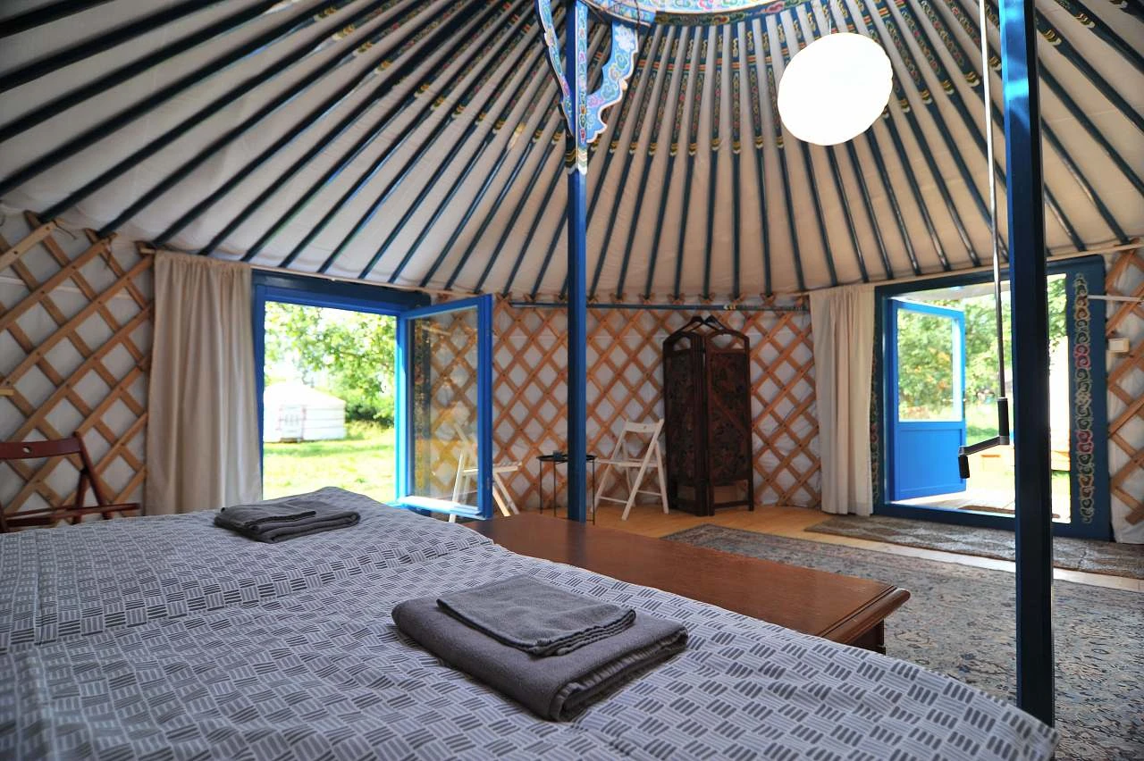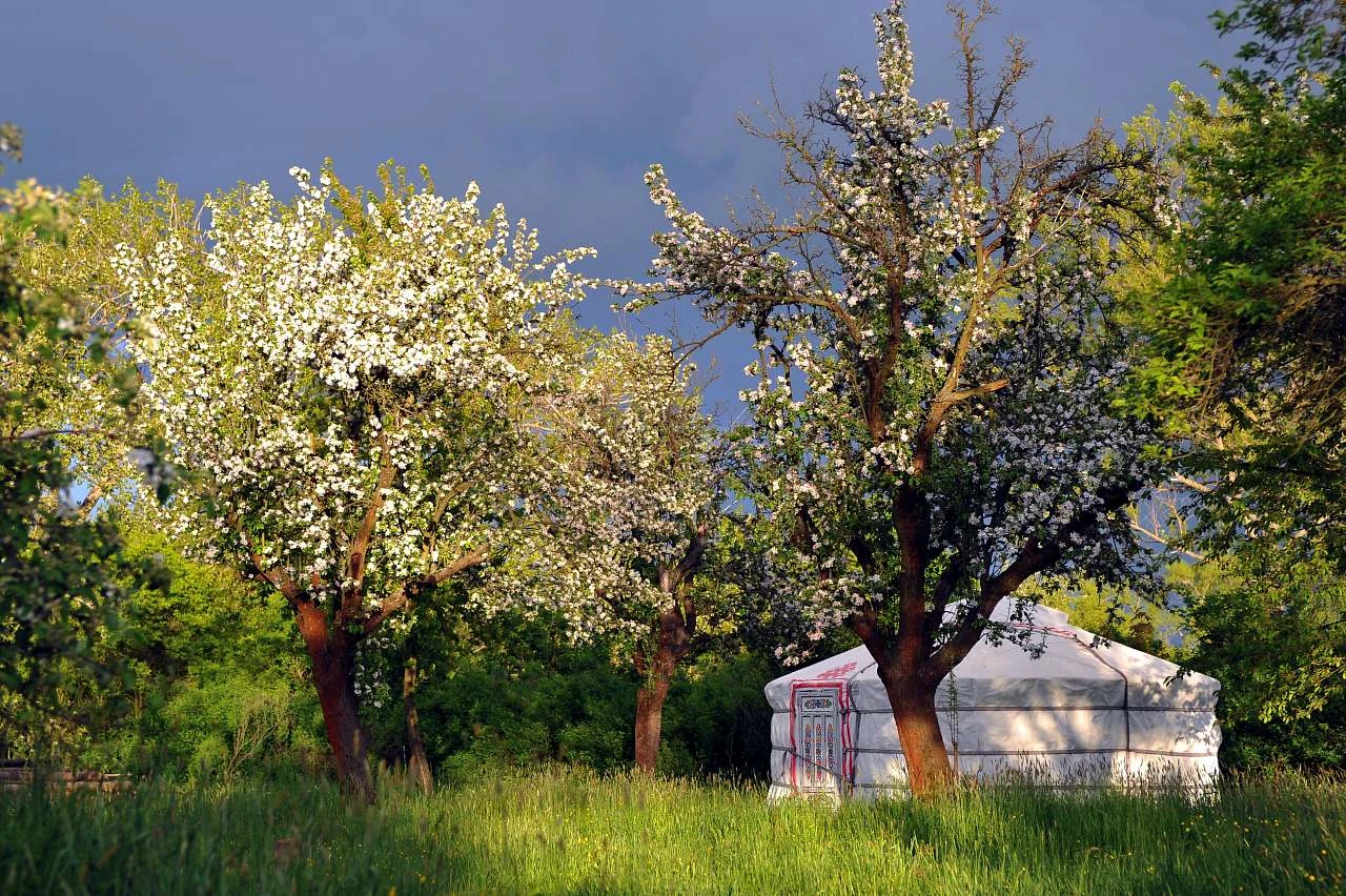Umístění v ovocném sadu zajišťuje klid a harmonii s přírodou. Hosté mohou pozorovat hvězdy přímo z postele nebo si vychutnat úchvatné východy slunce. Jurty jsou obklopeny zelení a poskytují příjemné místo k relaxaci, meditaci nebo rodinným aktivitám.