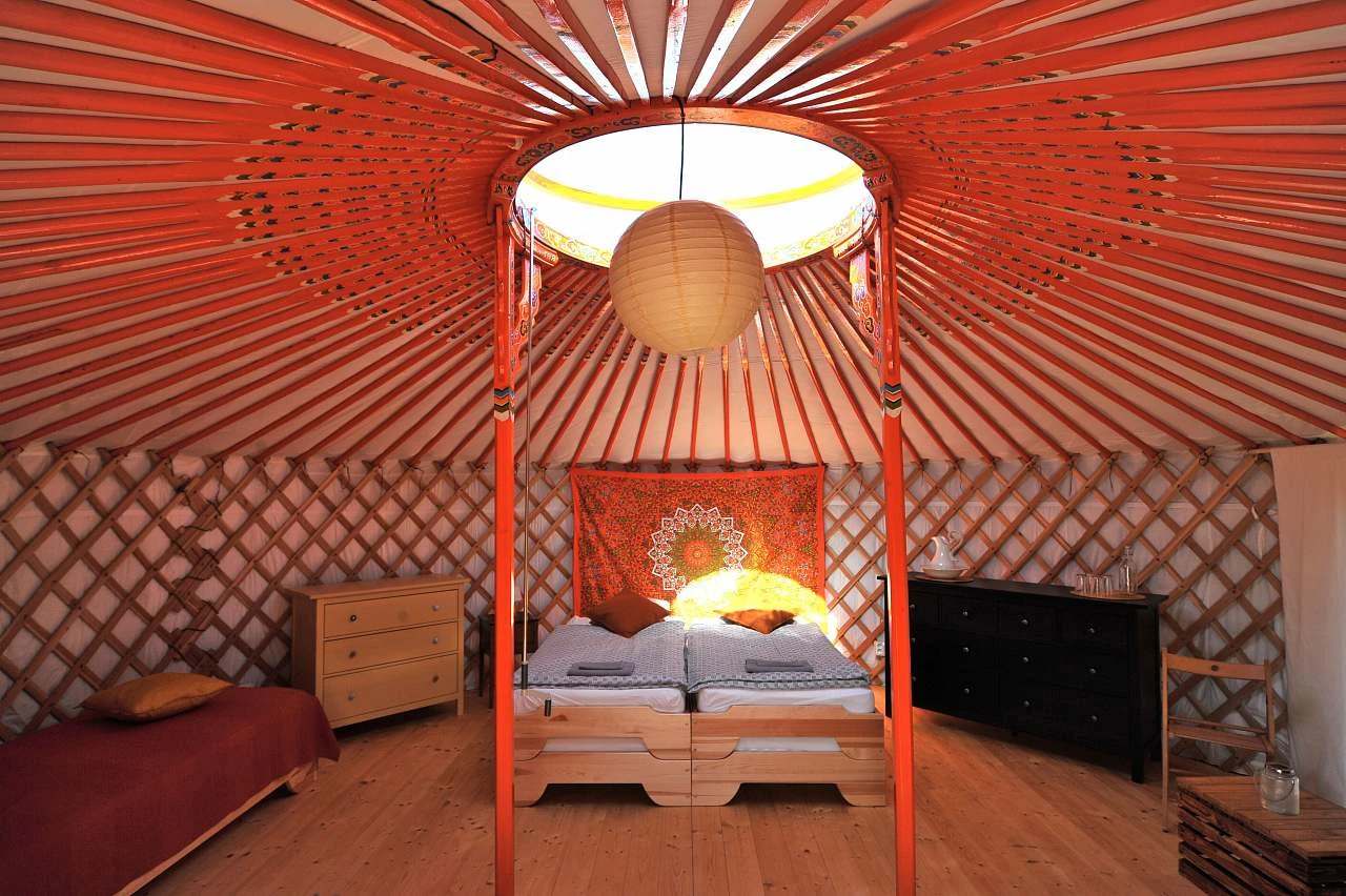 Maximální kapacita každé z malovaných jurt je 6 osob. Základní cena počítá se 4 hosty.
