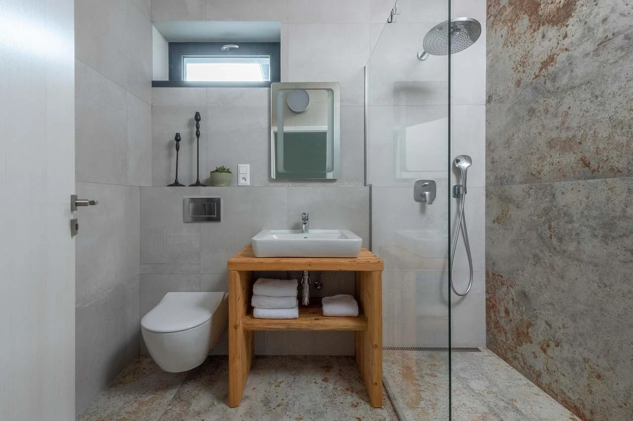 1x koupelna se sprchovým koutem a WC. 1 x koupelna se sprchovým koutem, vanou a WC. 2 x koupelna se sprchovým koutem. 2 x sólo WC.