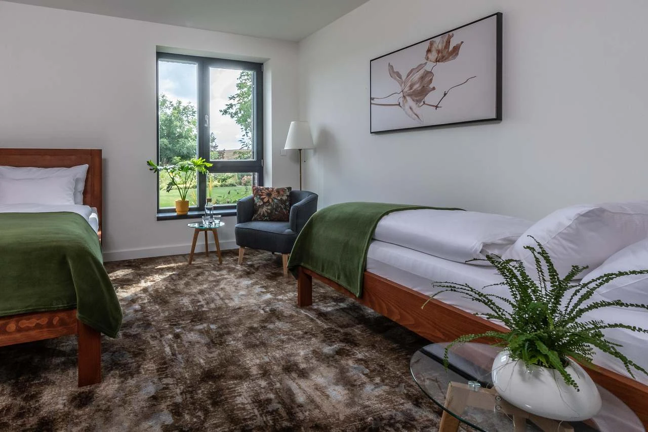 Pro zajištění klidného spánku a soukromí jsou všechny ložnice vybaveny venkovními žaluziemi. Každý host má k dispozici dva polštáře, deku, kvalitní povlečení, jeden ručník a dvě osušky, z nichž jedna je určena pro použití v bazénu nebo sauně.