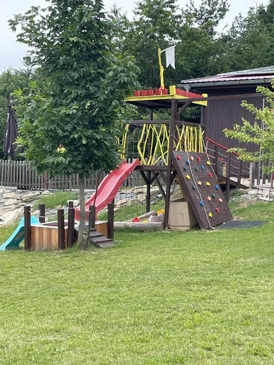 Balkon/terasa, Bazén, Dětské hřiště, Koupelna, Kuchyně, Lednice, Restaurace, Sauna, Stolní hry, TV, Venkovní gril, WiFi, Zahradní nábytek, Zvířata povolena, Ohniště, Volejbal, Fotbal, Petanque, Tenis, Stolní tenis
