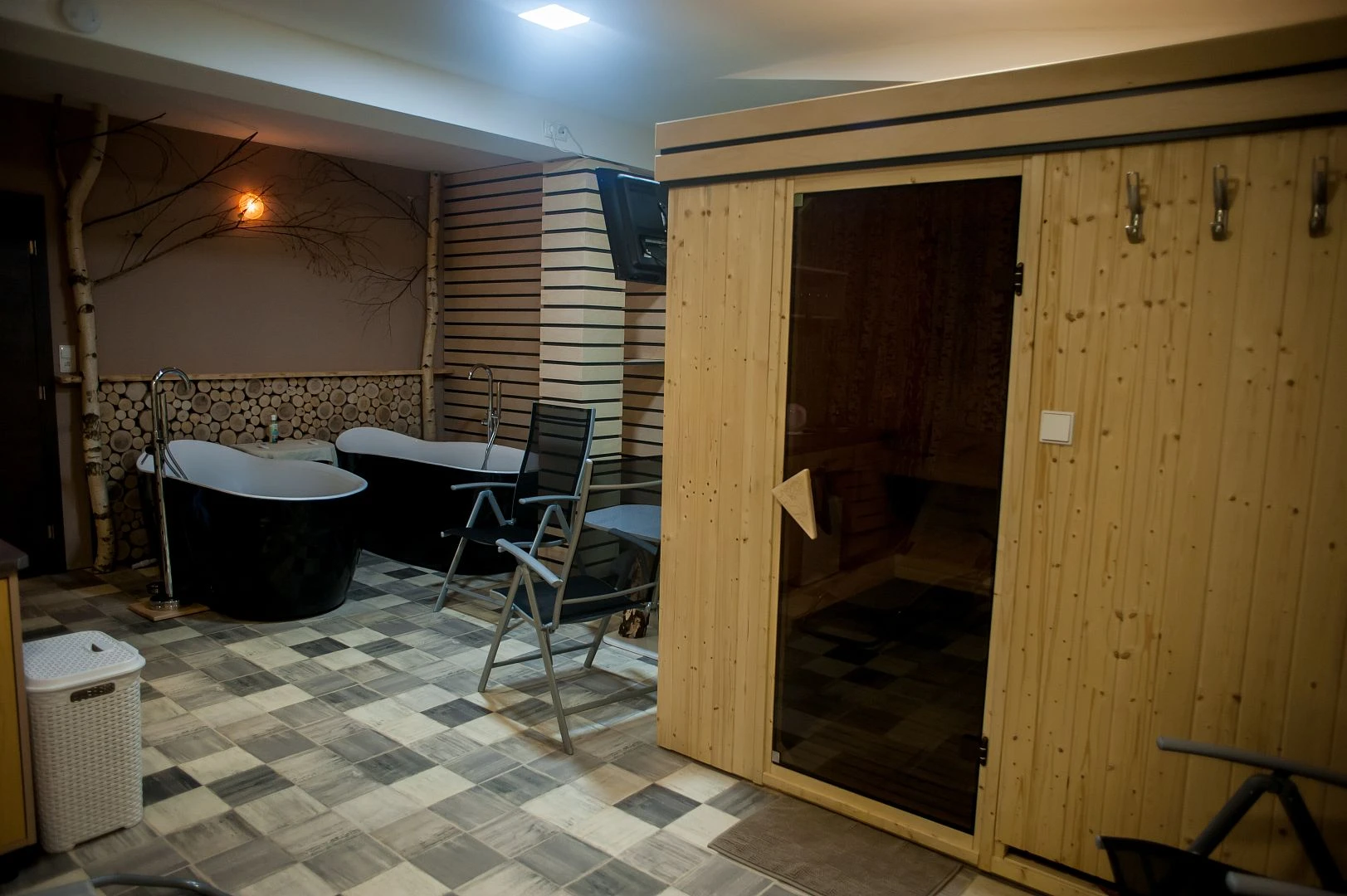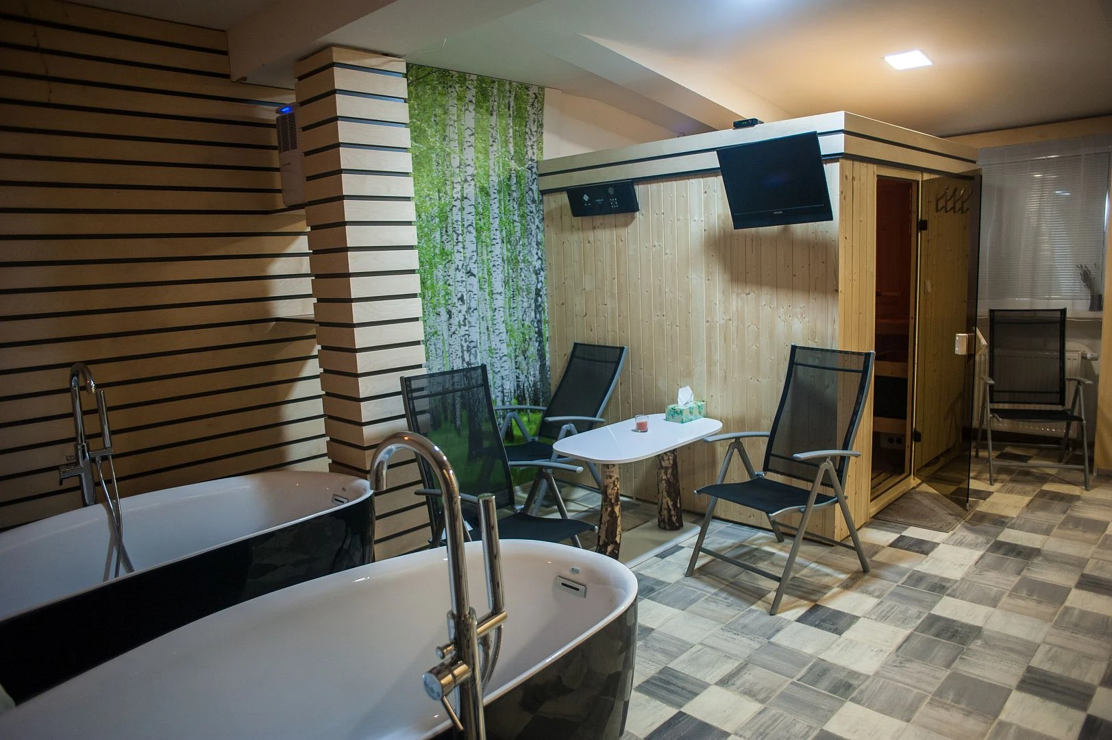 Hosté mohou využít privátní wellness zónu s finskou saunou, vířivými vanami, masážemi a relaxačními procedurami.