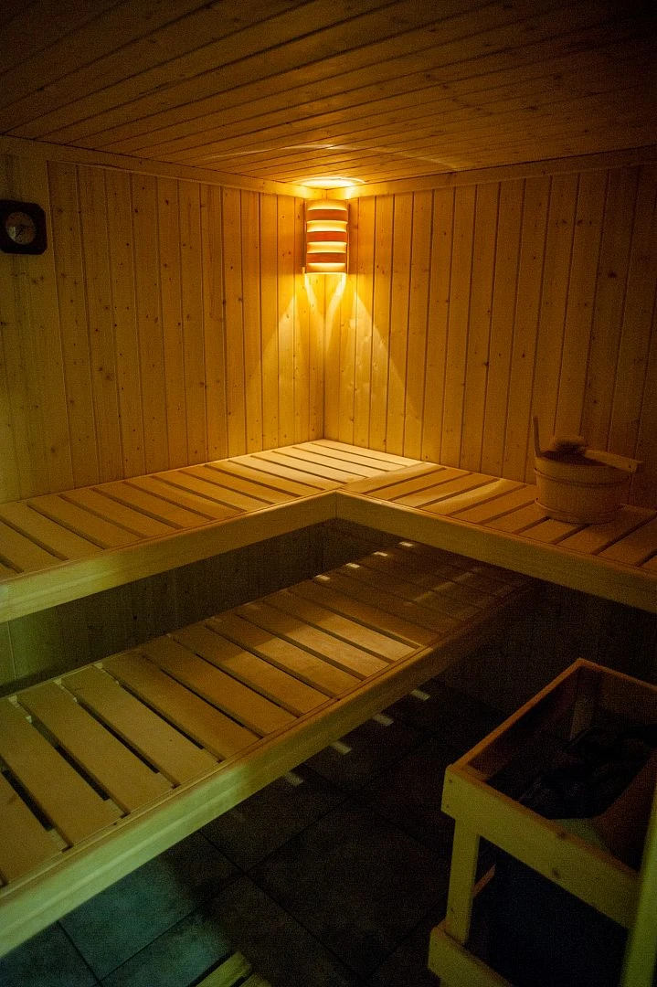 - Tradiční suchá sauna s vysokou teplotou, která pomáhá uvolnit tělo i mysl.