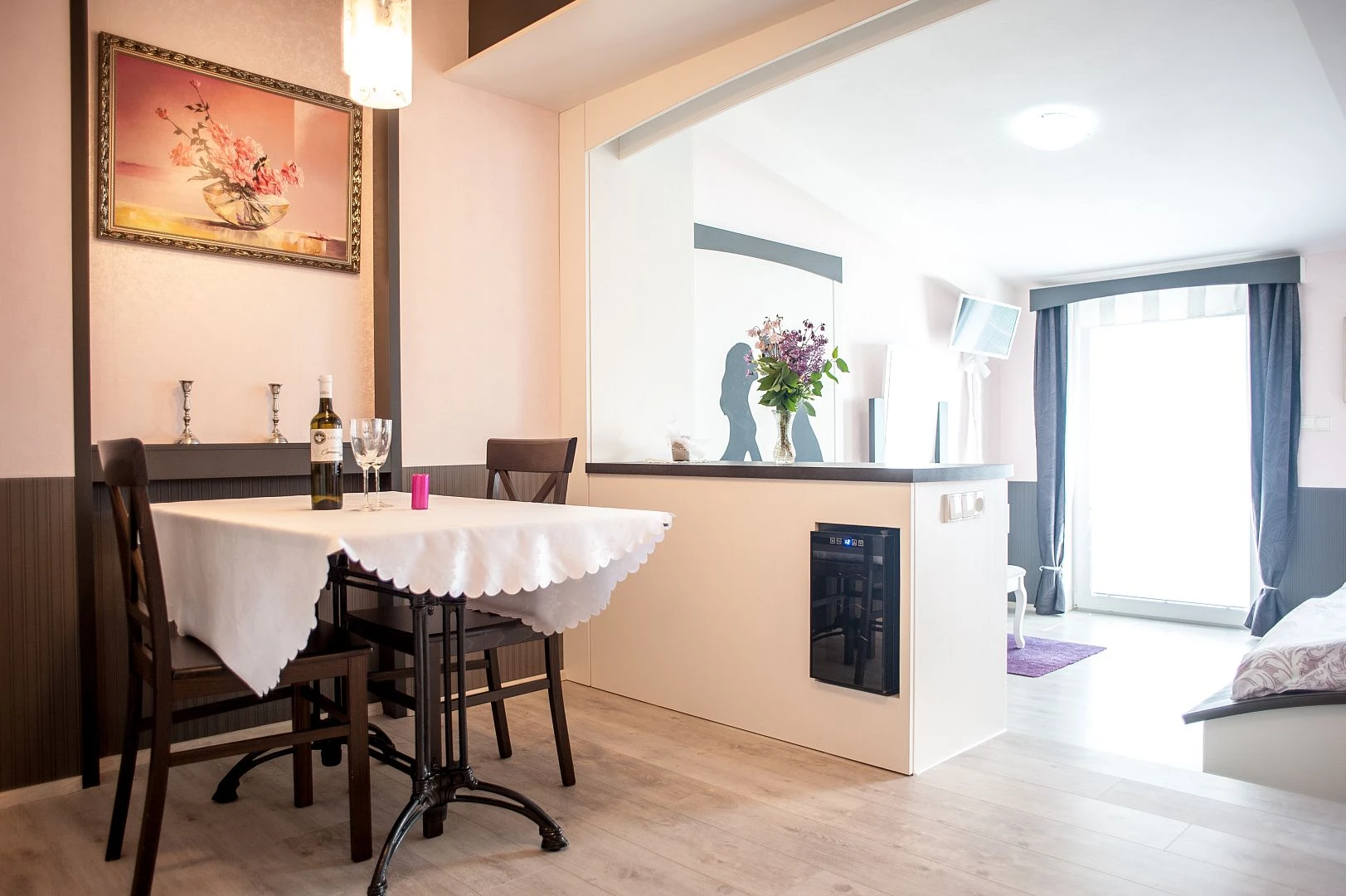 - Vybavení: Klimatizace, televize, vinotéka, terasa s posezením a přímým vstupem do zahrady.