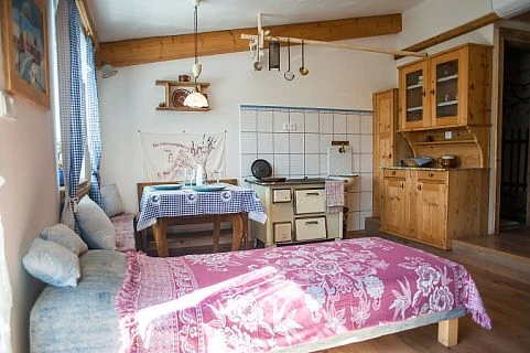 - Vybavení: Stylové venkovské dekorace, okno směrem k příjezdu/zahradám.