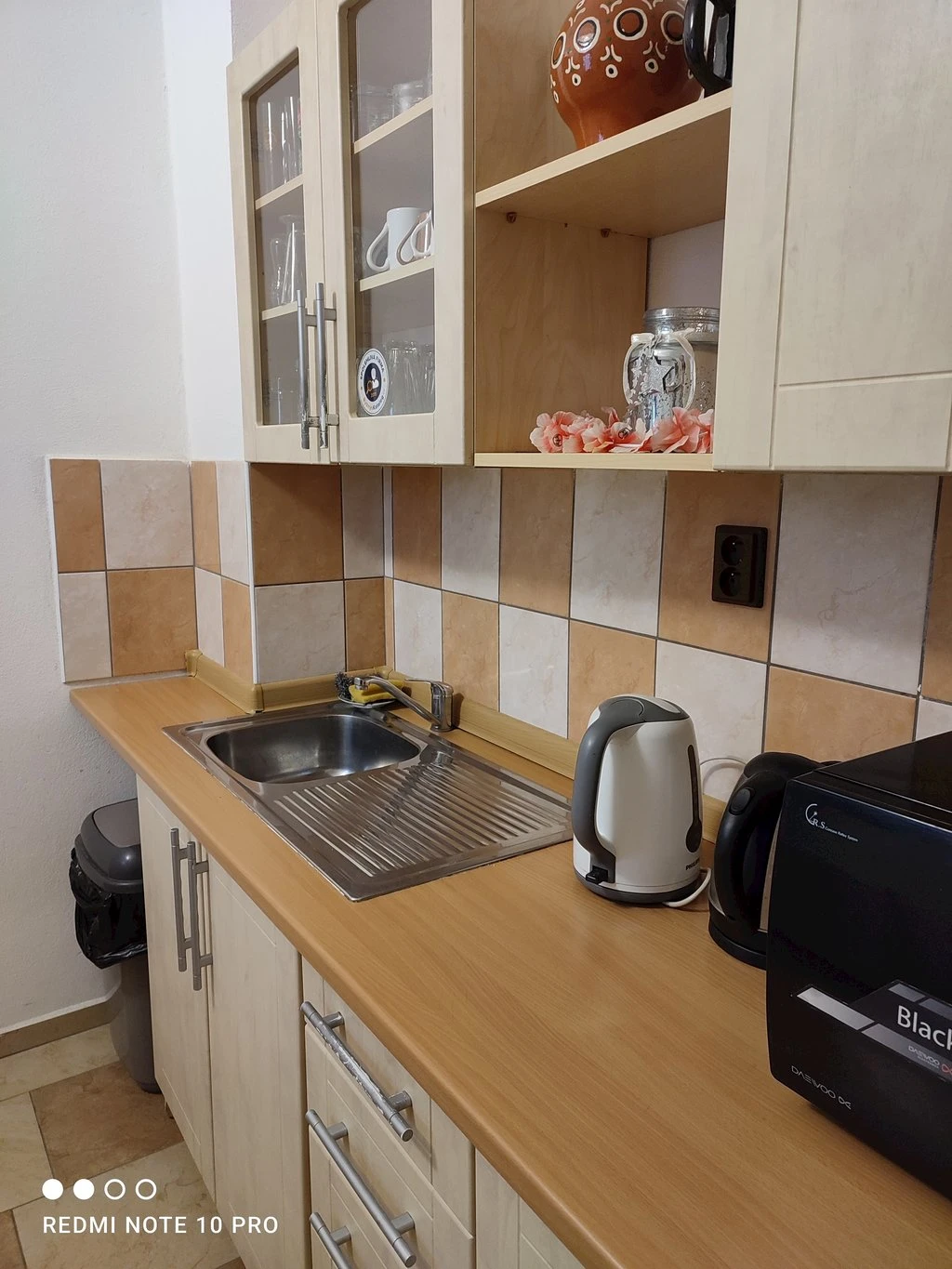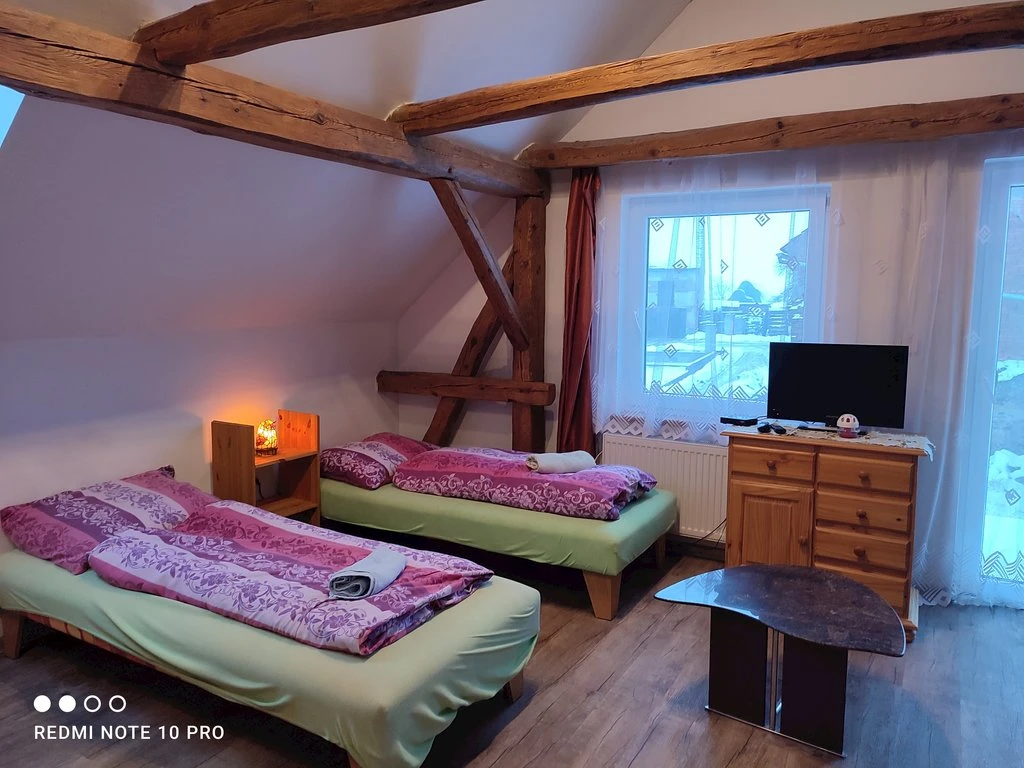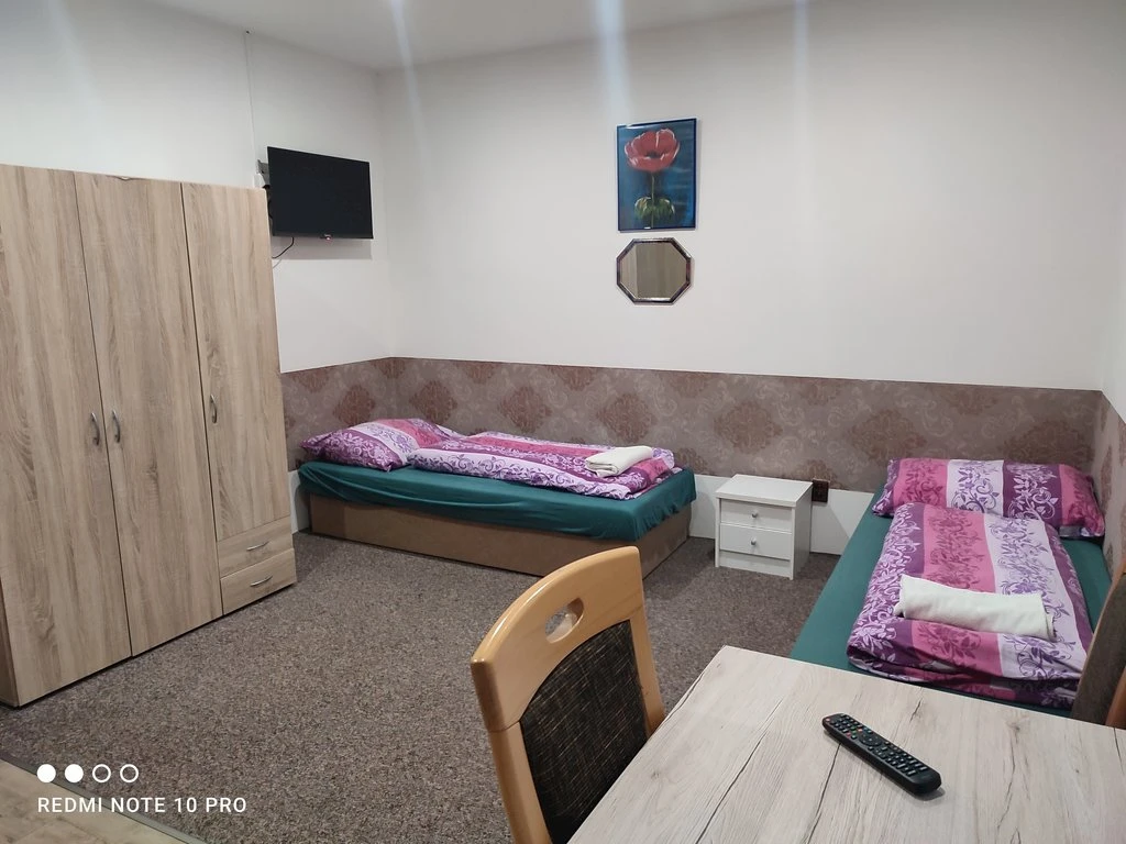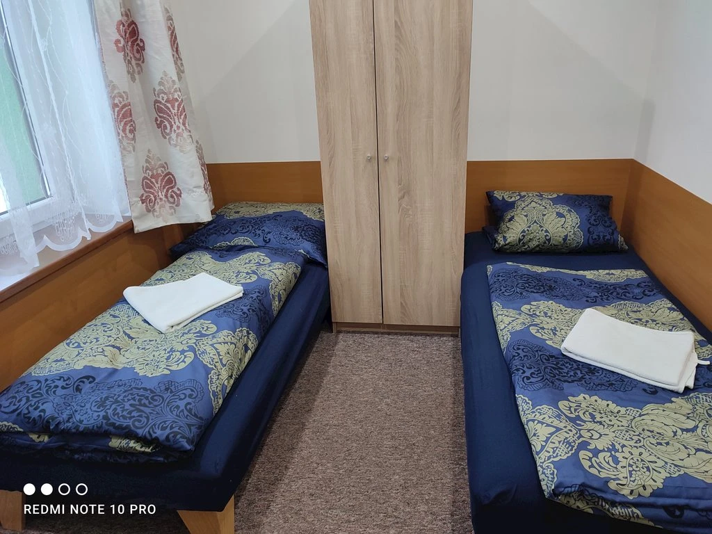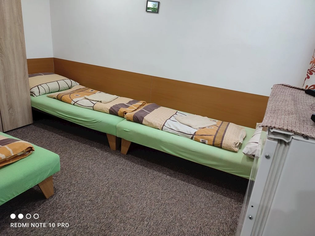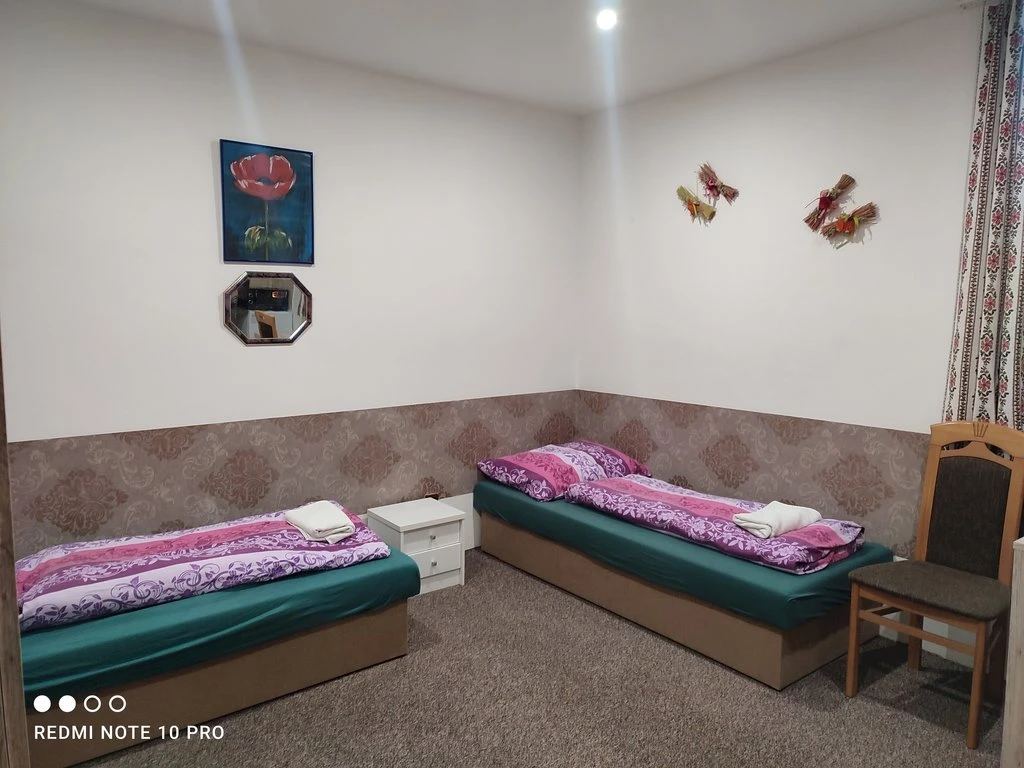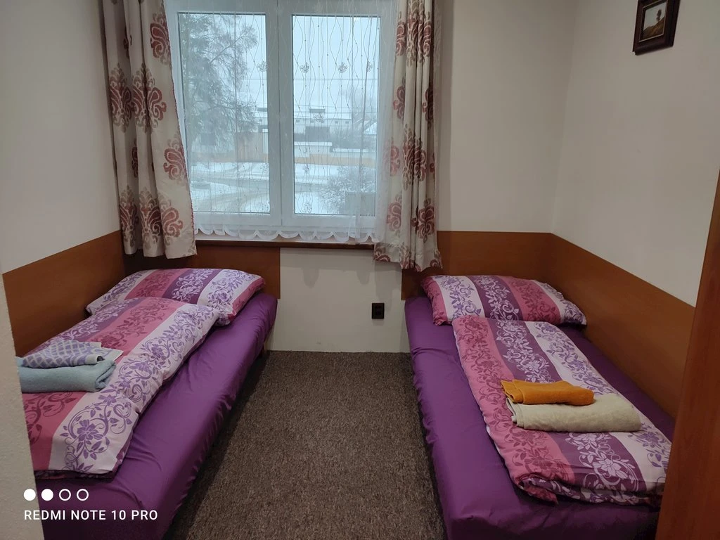 Velikost: 22 m² Umístění: přízemí Ložnice: 2x Jednolůžková postel – Možnost spojit do dvojlůžka Vybavení: Balkon, Internet WiFi, Televize, Kabelová TV Koupelna s toaletou Sprcha, Umyvadlo, Toaleta, Ručníky Kuchyňský kout Mikrovlnná trouba, Rychlovarná konvice, Lednička, Mraznička, Jídelní sezení, Indukční varná deska