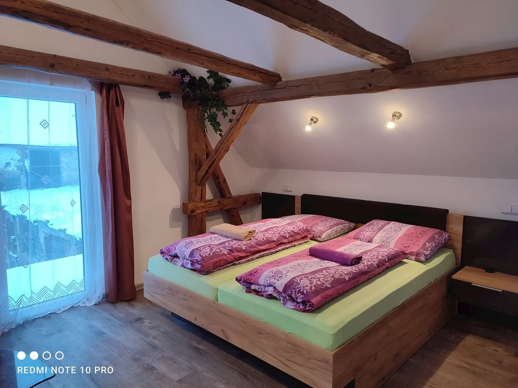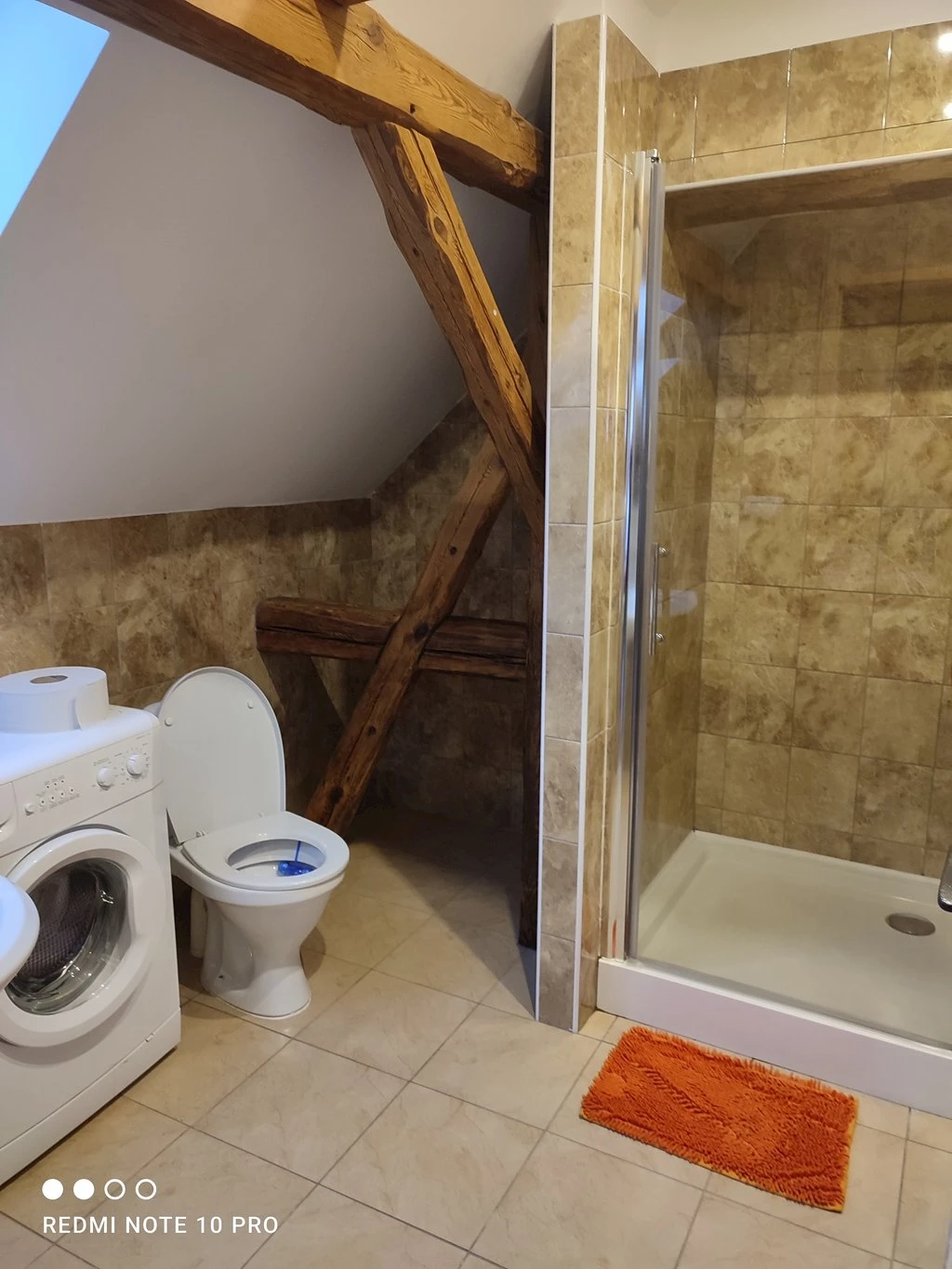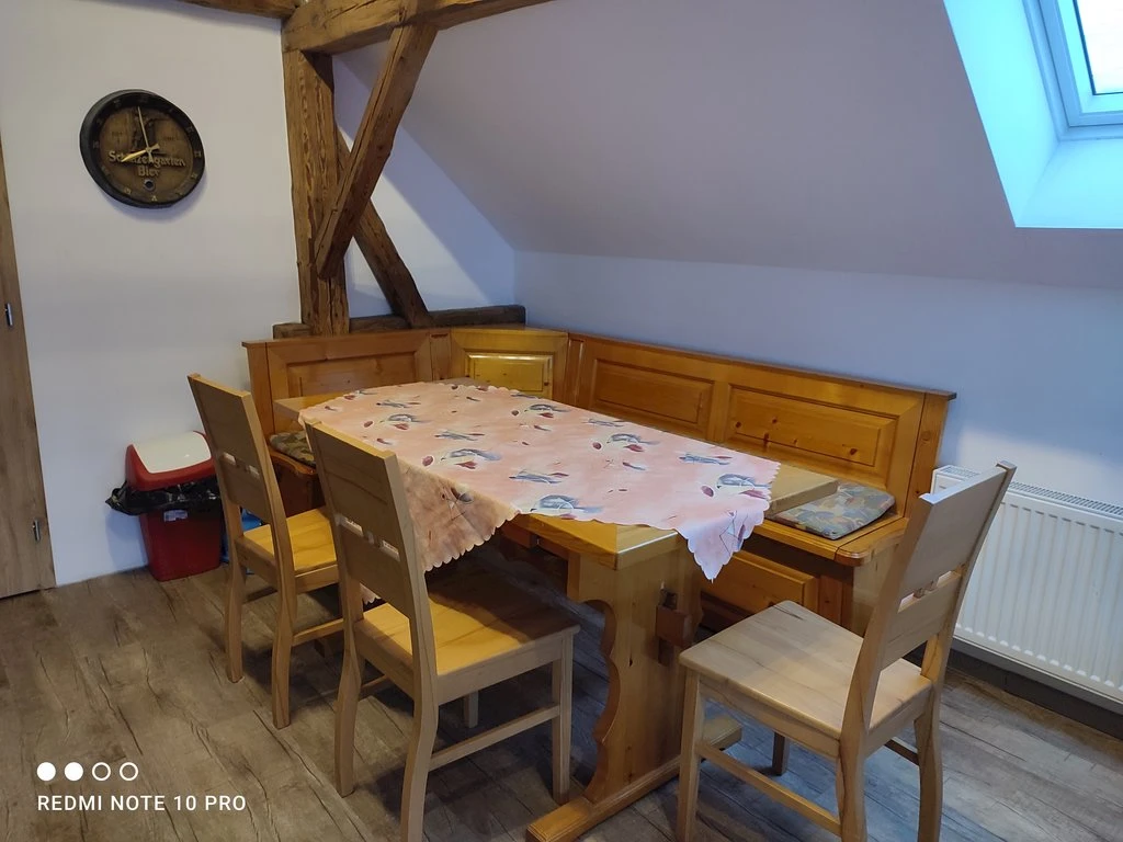 Velikost: 50 m² Umístění: 1. patro Ložnice: 1x Manželská postel 2x Jednolůžková postel – Možnost spojit do dvojlůžka 1x Přistýlka (rozkládací postel) Vybavení: Balkon, Internet WiFi, Televize, Kabelová TV Koupelna s toaletou Sprcha, Umyvadlo, Toaleta, Pračka, Sušák na prádlo, Ručníky, Sušička Kuchyň Elektrický vařič, Mikrovlnná trouba, Remoska, Rychlovarná konvice, Lednička, Mraznička, Jídelní sezení