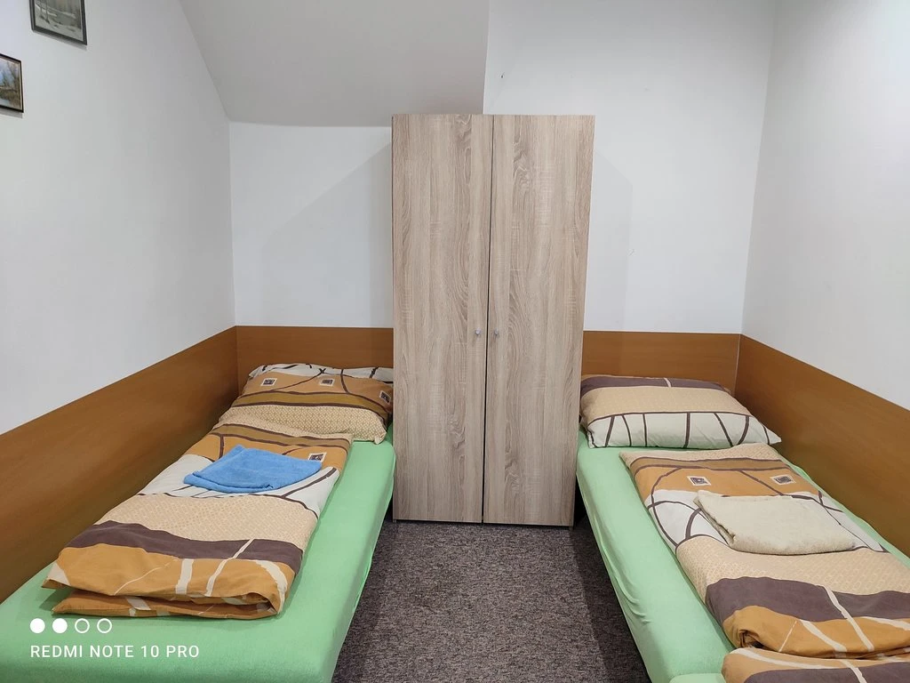 Velikost: 32 m² Umístění: přízemí Ložnice: 2x Jednolůžková postel – Možnost spojit do dvojlůžka Vybavení: Internet WiFi, Televize, Lednička, Rychlovarná konvice, Kabelová TV, Terasa, Pracovní stůl Koupelna s toaletou Sprcha, Umyvadlo, Toaleta, Ručníky