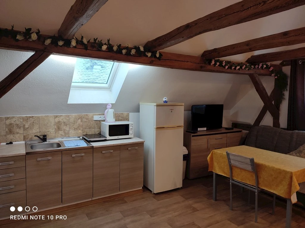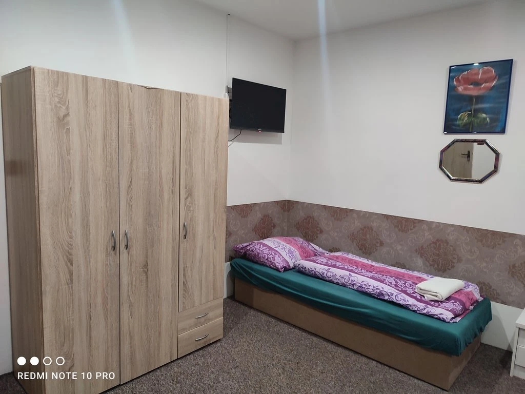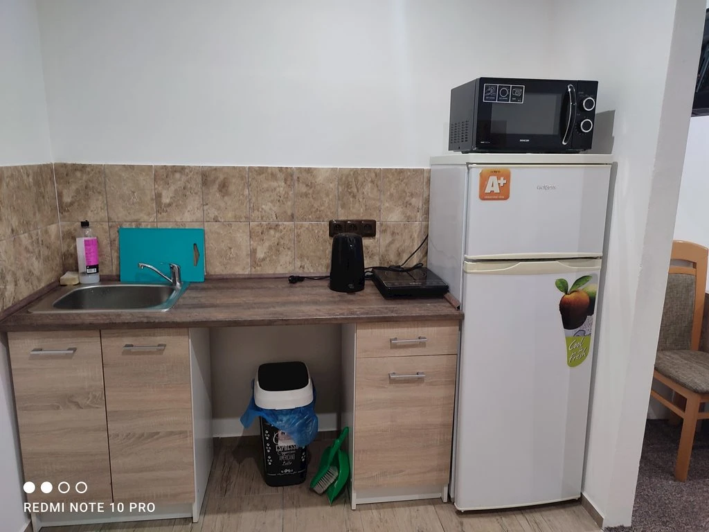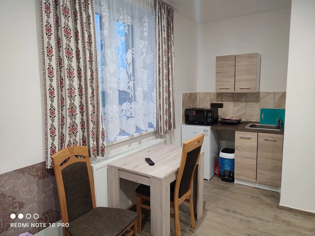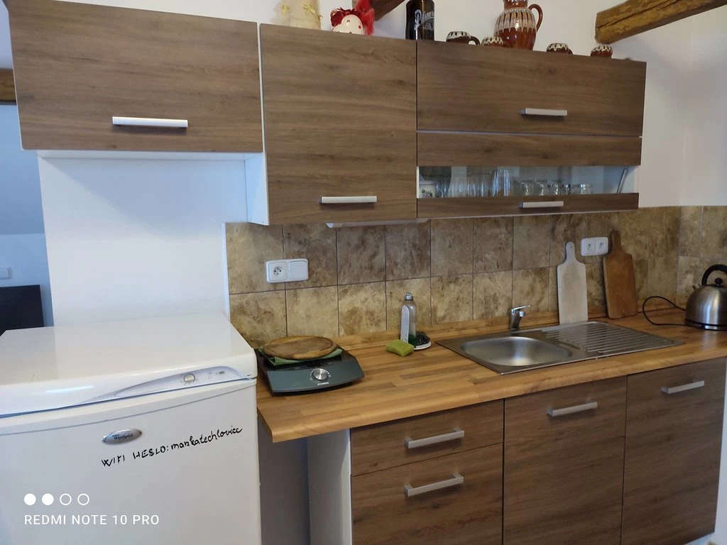 Velikost: 10 m² Umístění: přízemí Ložnice: 1x Jednolůžková postel Vybavení: Internet WiFi, Televize, Kabelová TV, Terasa, Soukromý vchod do budovy Koupelna s toaletou Sprcha, Umyvadlo, Toaleta, Ručníky Kuchyňský kout Mikrovlnná trouba, Rychlovarná konvice, Lednička, Mraznička, Jídelní sezení, Indukční varná deska
