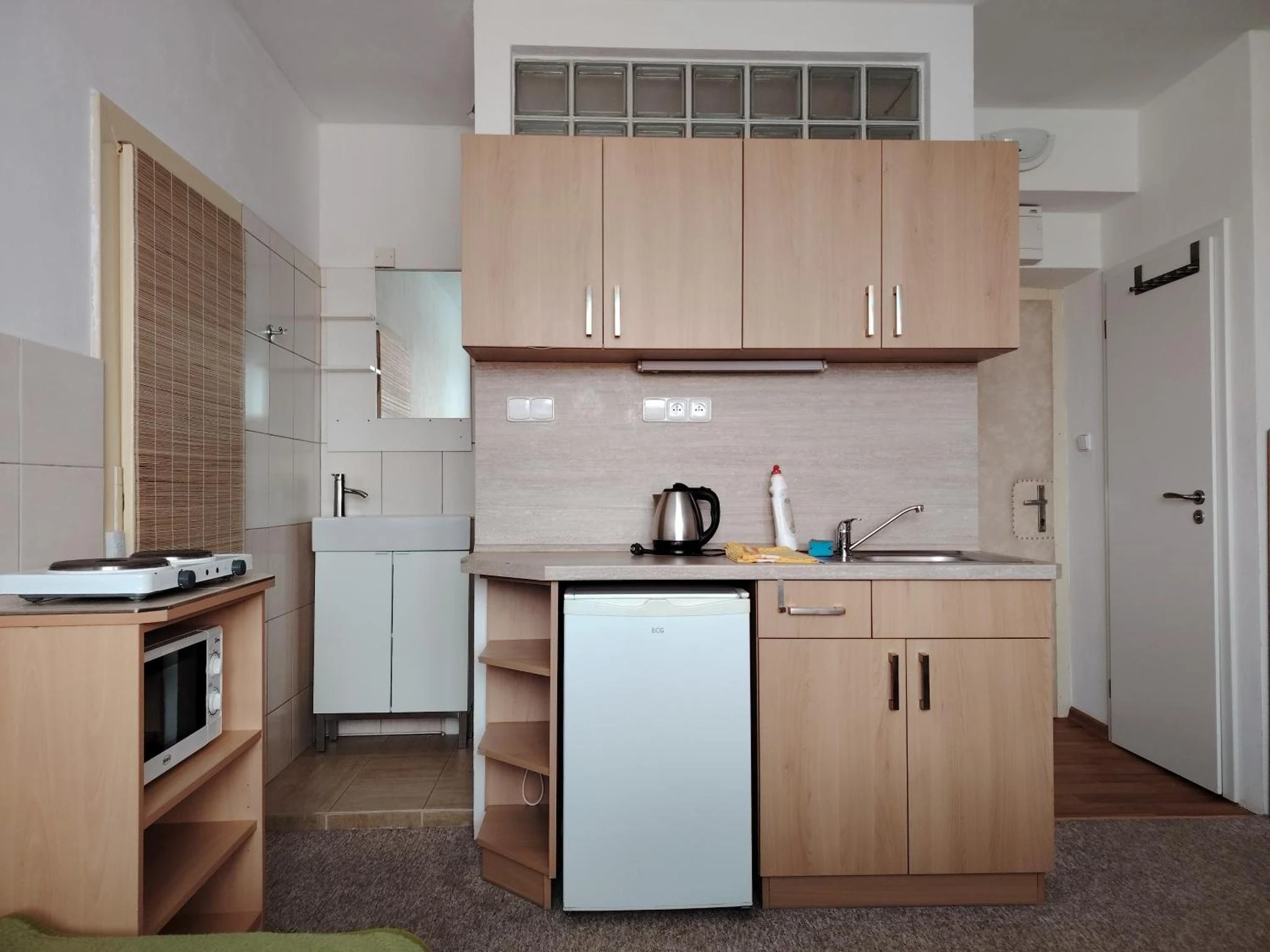 Dvoulůžkový pokoj s kuchyňským koutem a příslušenstvím.