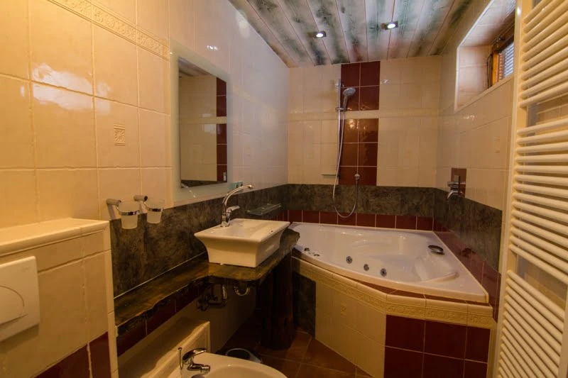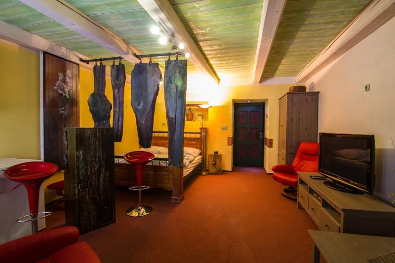 Studio č. 8 - dvoulůžko + samostatné lůžko, kuchyňský kout (varná deska, varná konvice, nádobí) TV, infrasauna, koupelna s vířivou vanou, WC, bidet, výhled na hory, samostatný vchod, umělecká výzdoba