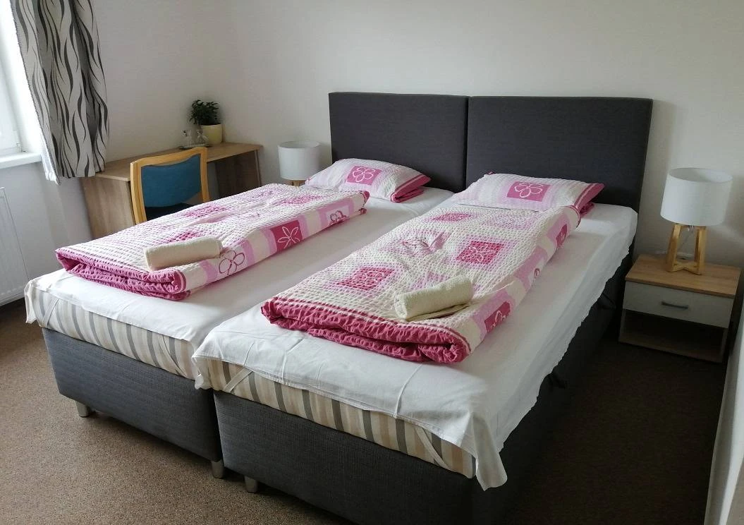 V našem pensionu máme k dispozici 18 lůžek v 7 dvoulůžkových pokojích a 1 čtyřlůžkovém apartmánu.