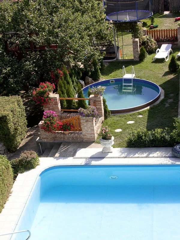 - venkovní otevřené bazény - velký 8x5x1,5m - kruhový 3,6m - brouzdaliště 5x3x0,4m