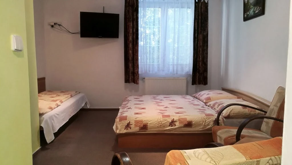 - přízemí - 2x dvou a 2x třílůžkový pokoj (koupelna na pokoji, společná jídelna a kuchyň)