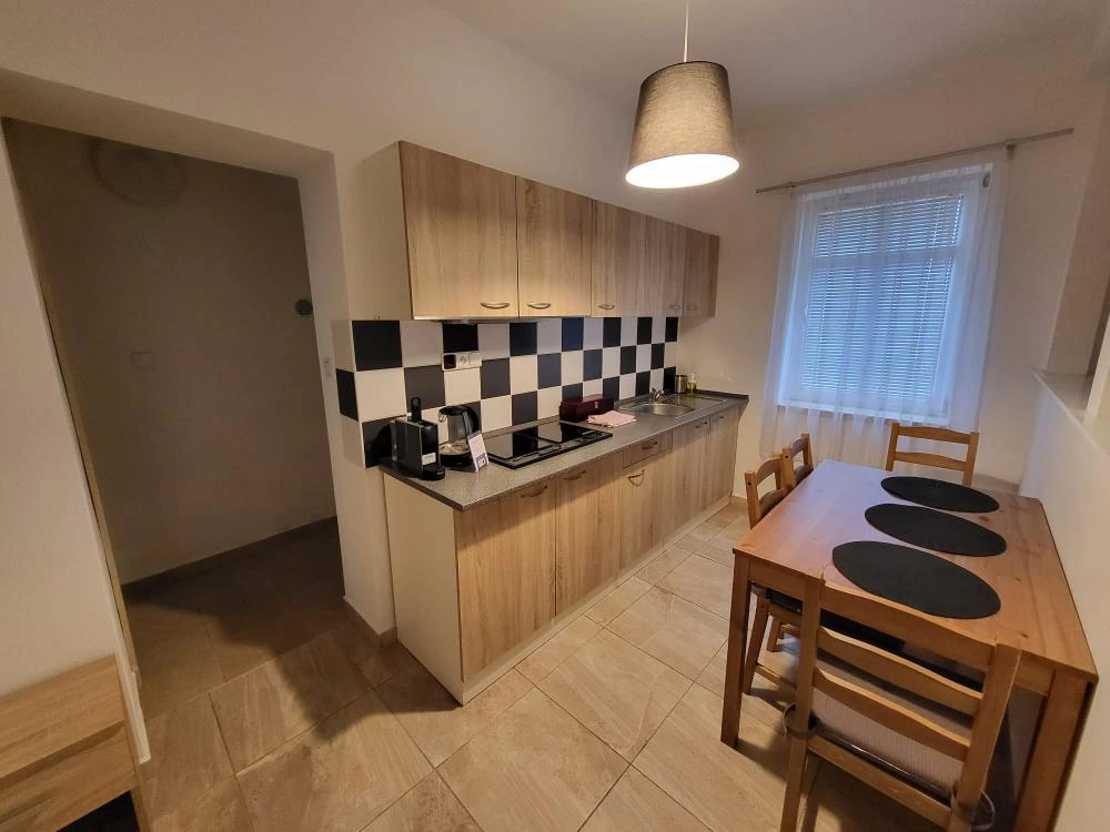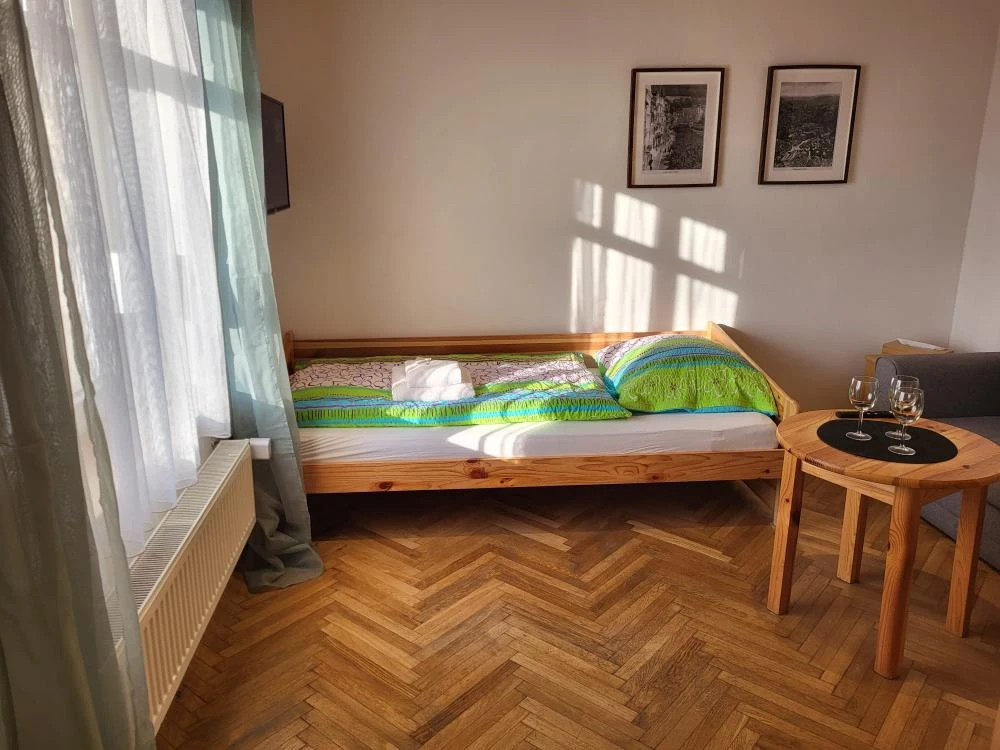 Dvoulůžkový apartmán s vlastním posezením, kávovarem, rychlovarnou konvicí, sporákem, lednicí a mikrovlnnou troubou. Velikost pokoje 25m2, Wi-Fi zdarma, SMART TV, výhled od zahrady, vlastní koupelna se sprchovým koutem. Posezení na zahradě, k dispozici elektrický gril a také gril na dřevěné uhlí. Možnost parkování u penzionu zdarma – platí do vyčerpání kapacity parkování (4 vozidla)