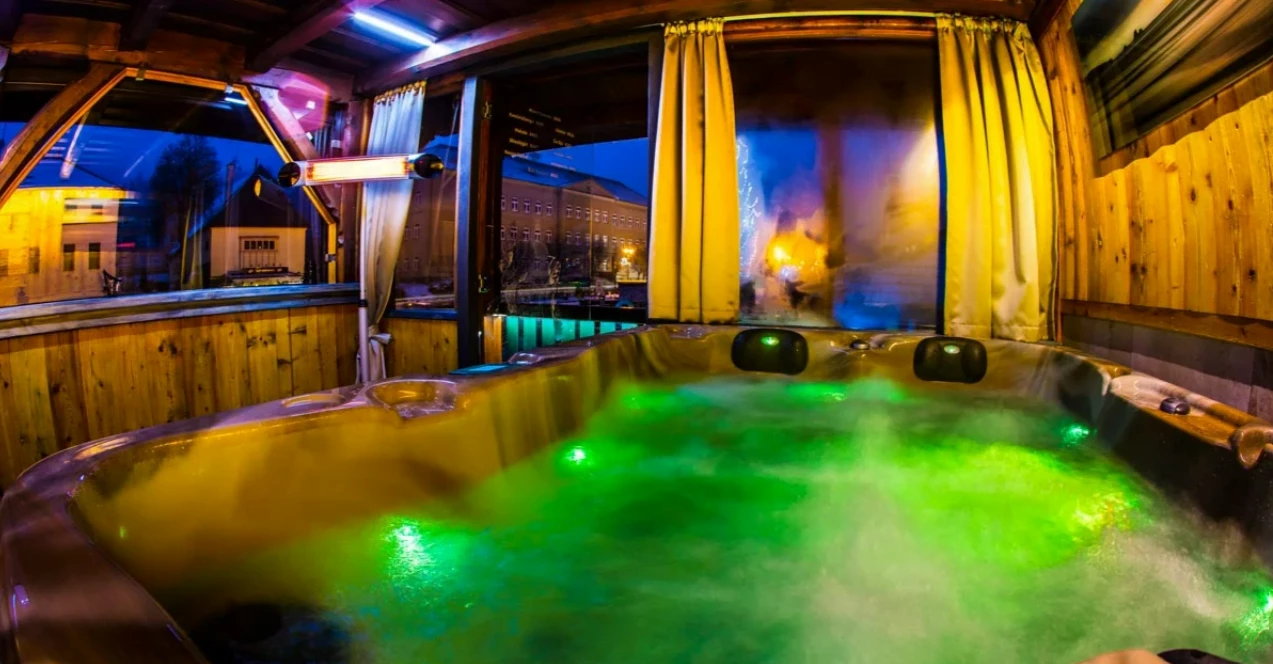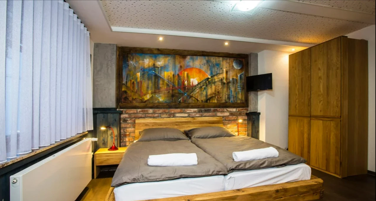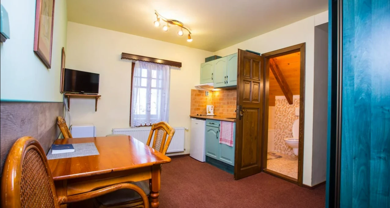 V našem Pensionu ROKY také nabízíme ubytování v jedinečném a prostorném wellness apartmánu. V tomto vkusném apartmánu najdete whirlpool a saunu s výhledem na rokytnické náměstí.