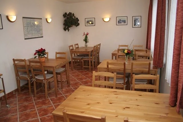 Hosté můžou využívat plně vybavenou kuchyň a jídelnu se společenskou částí. Z jídelny a některých pokojů je přístup na balkon s vlastním sezením.