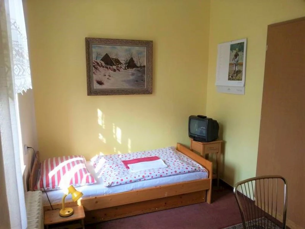 Jednolůžkový pokoj v Pensionu u Doležalů je určen pro jednu osobu a nabízí vše potřebné pro pohodlný pobyt. Pokoj zahrnuje jednu ložnici s jednolůžkovou postelí. Dále je k dispozici koupelna s toaletou, která je vybavena sprchou, umyvadlem a fénem. Hosté mají k dispozici ručníky. Pro zábavu a práci je v pokoji zajištěn internet WiFi a televize.