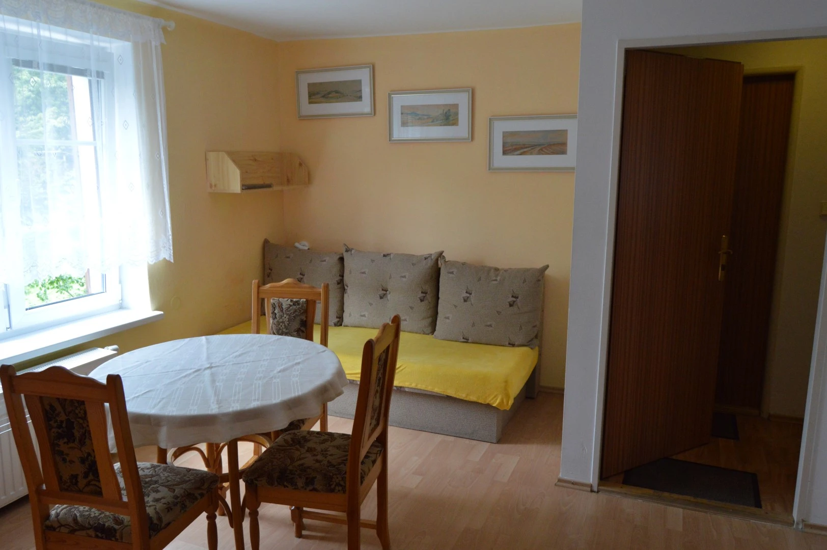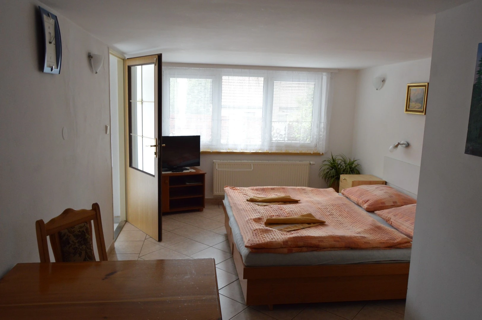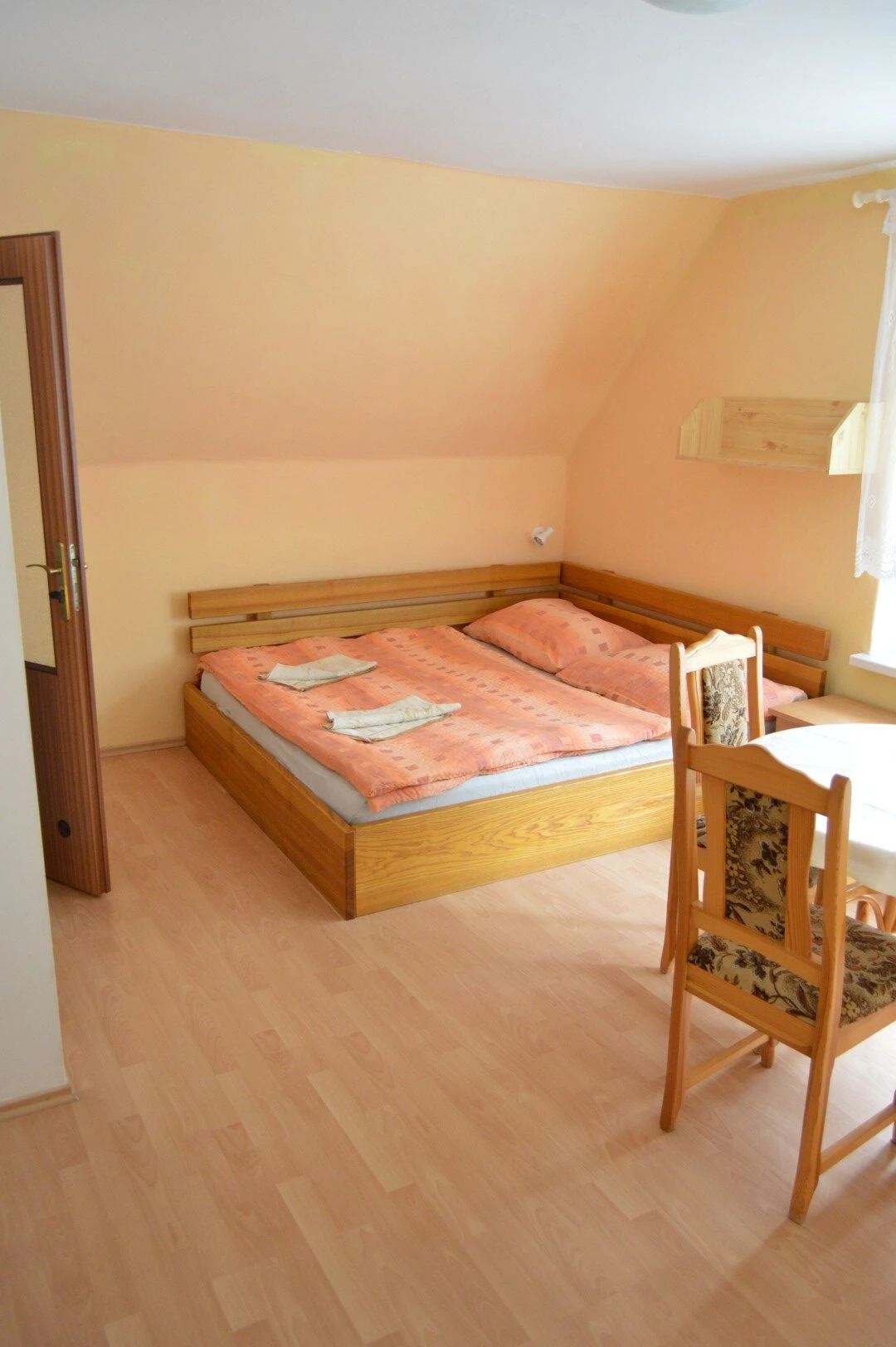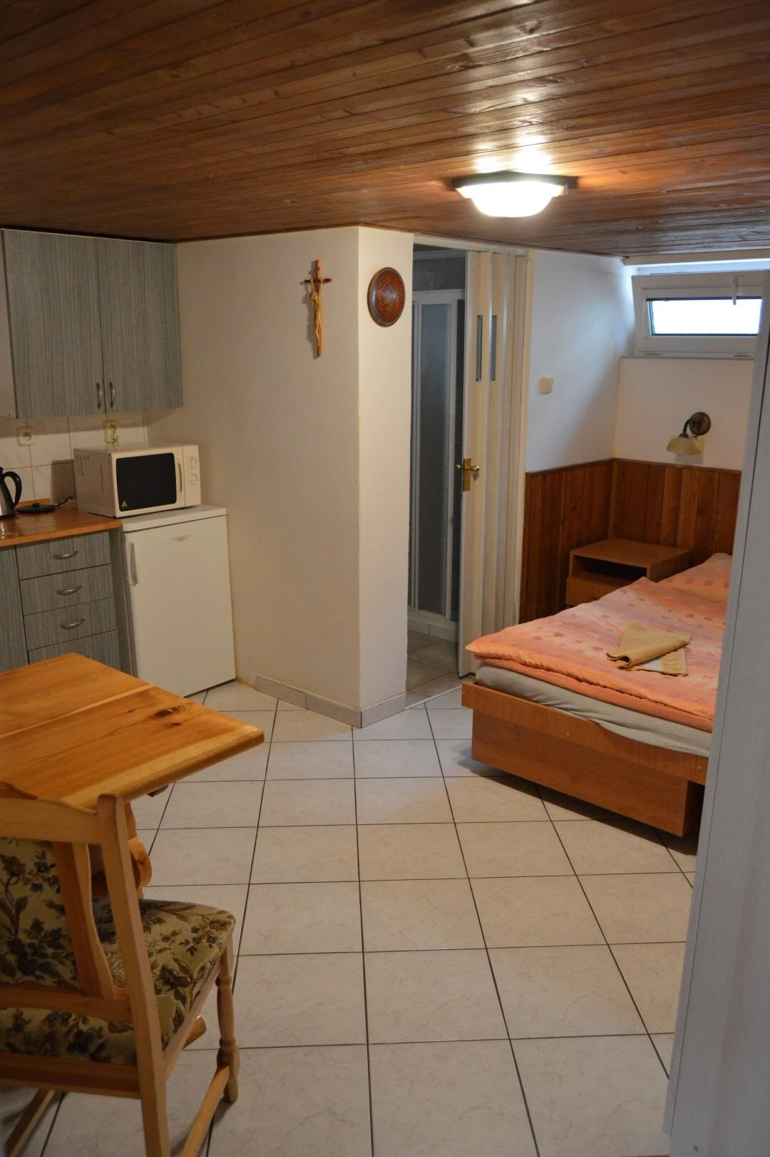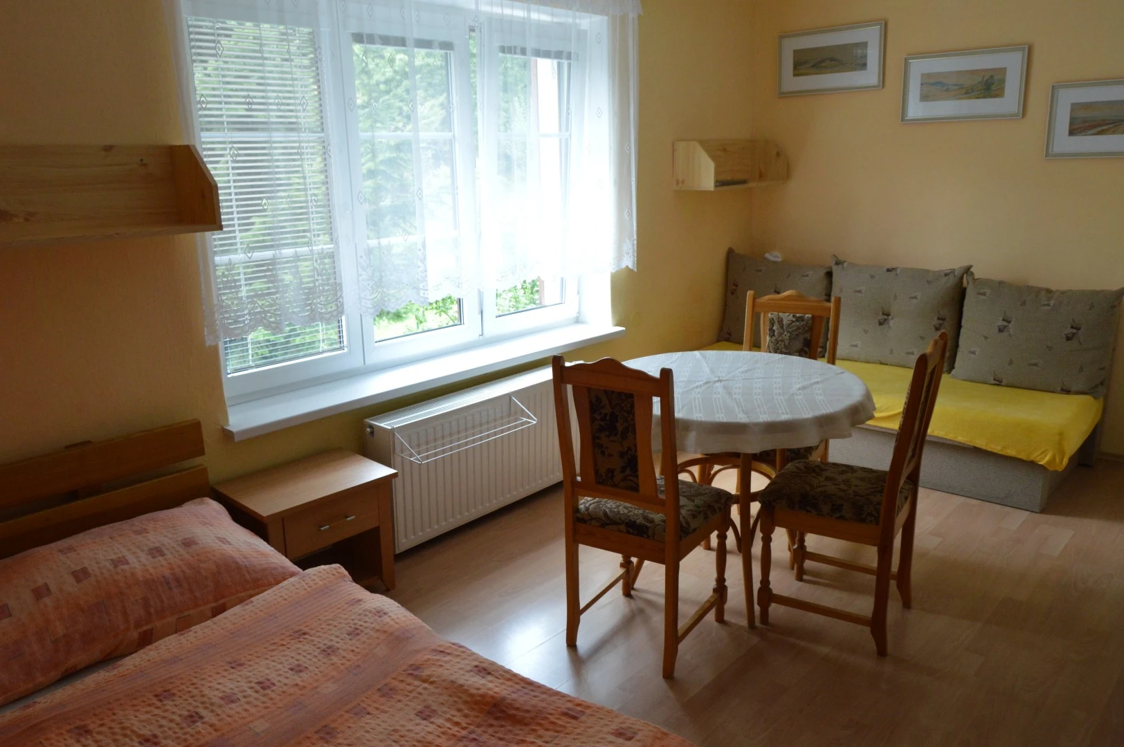- Pokoj č. 1 – apartmán s kapacitou 2+2 osoby, vybavený kompletní kuchyní, jídelnou a koupelnou.