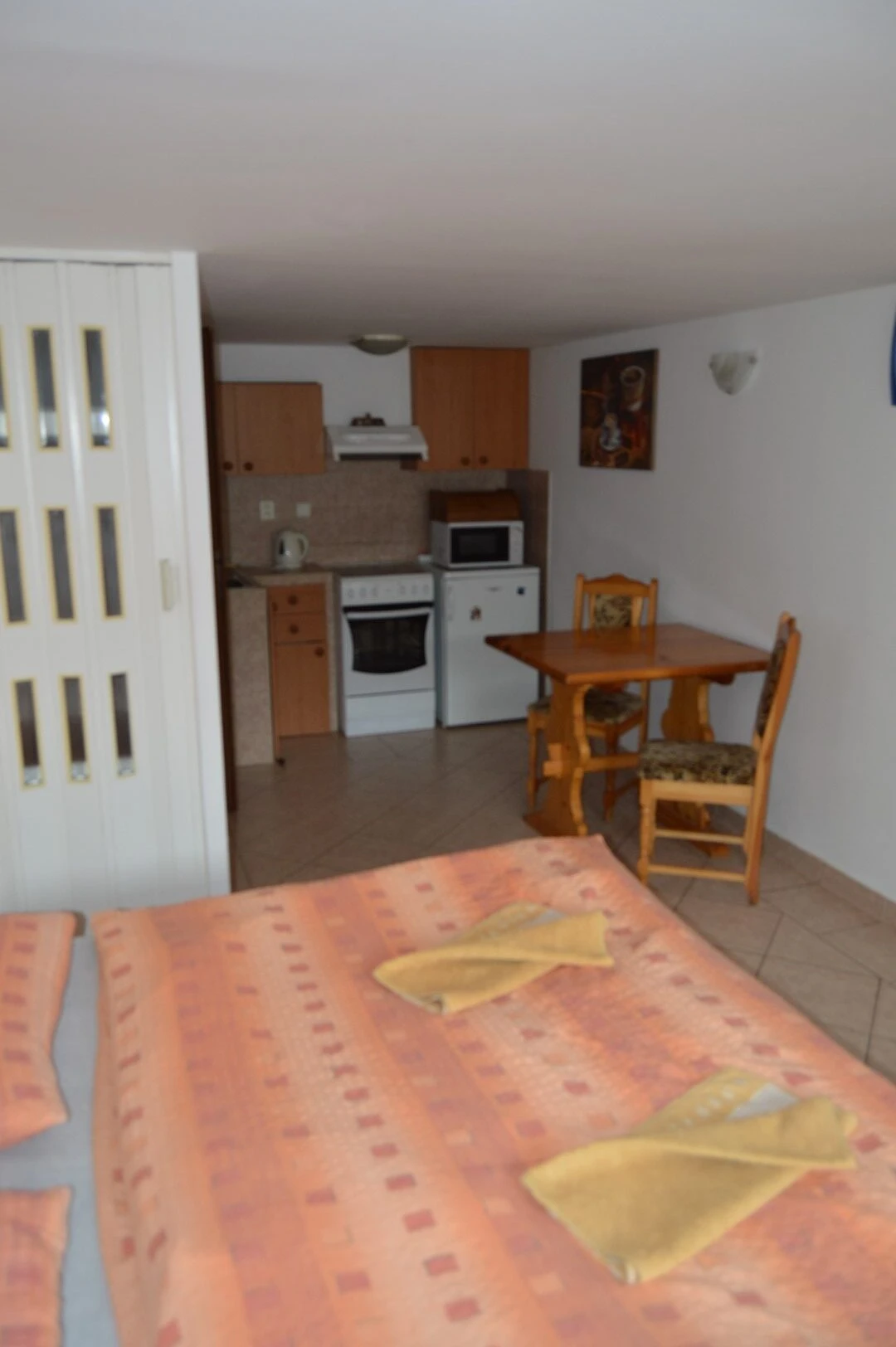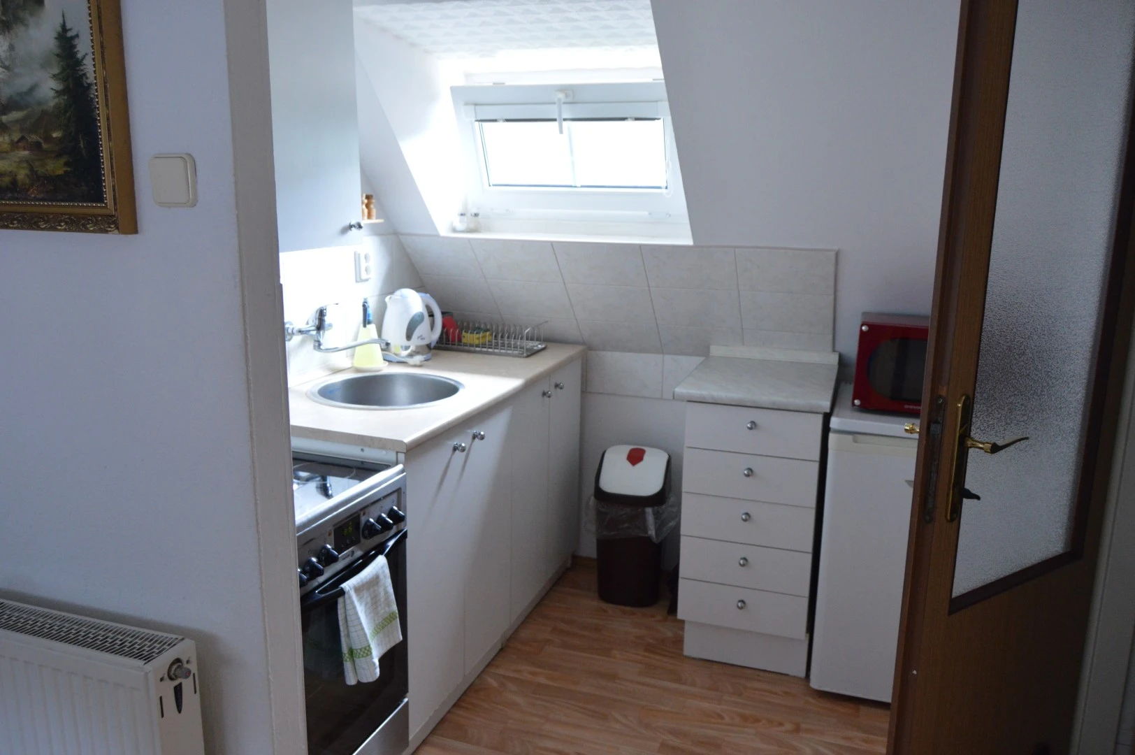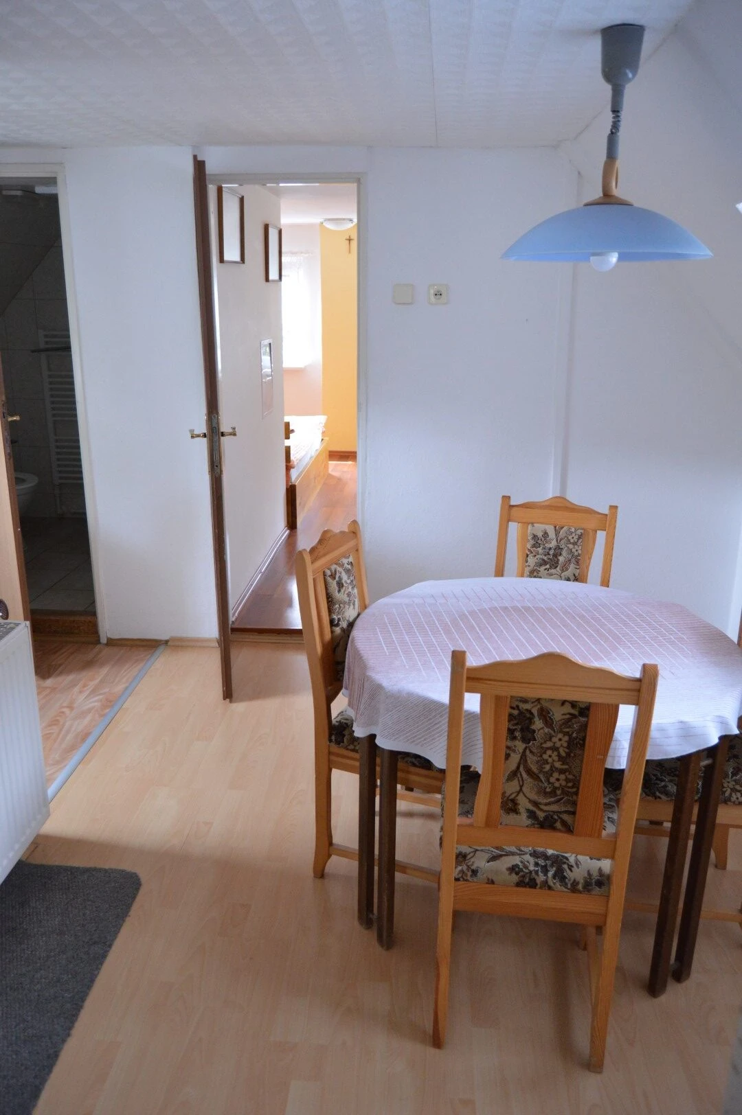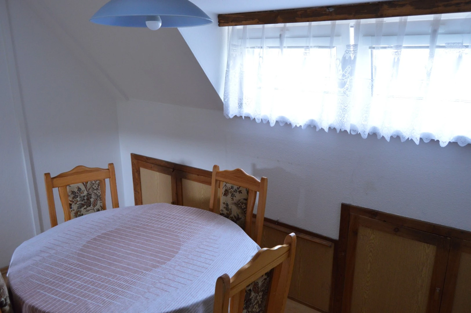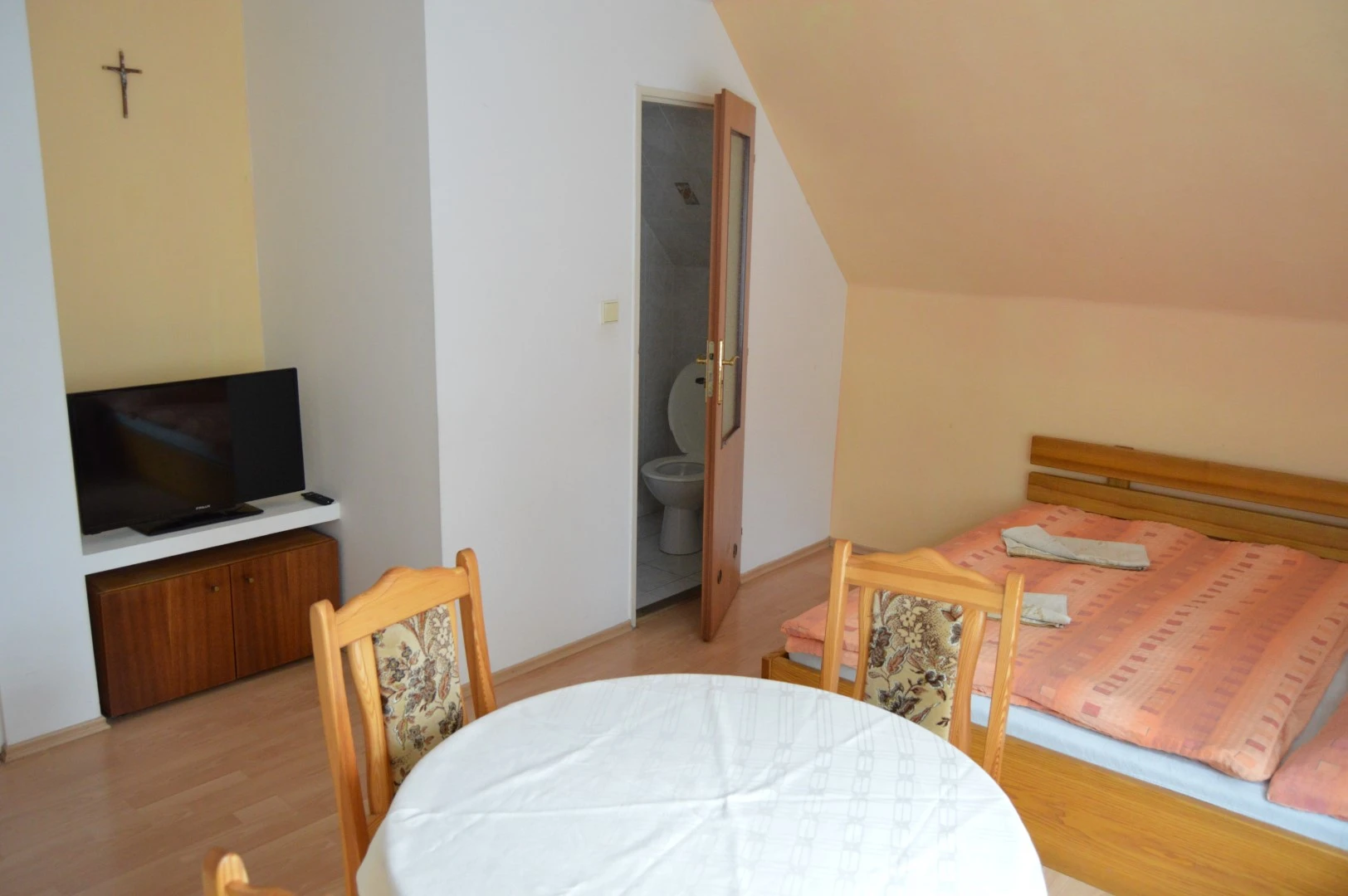 - Pokoj č. 1 – apartmán s kapacitou 2+2 osoby, vybavený kompletní kuchyní, jídelnou a koupelnou.