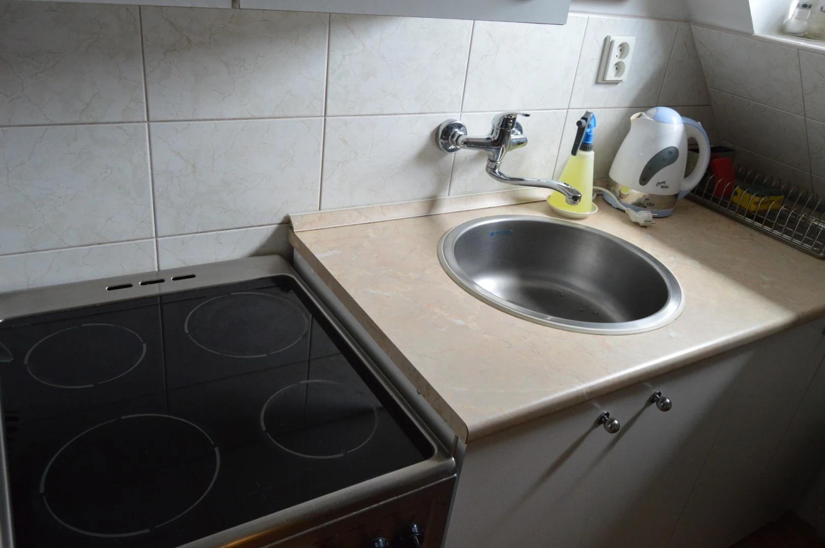 - Pro všechny pokoje v tomto patře je k dispozici společná plně vybavená kuchyň (sporák, mikrovlnná trouba, rychlovarná konvice, nádobí).