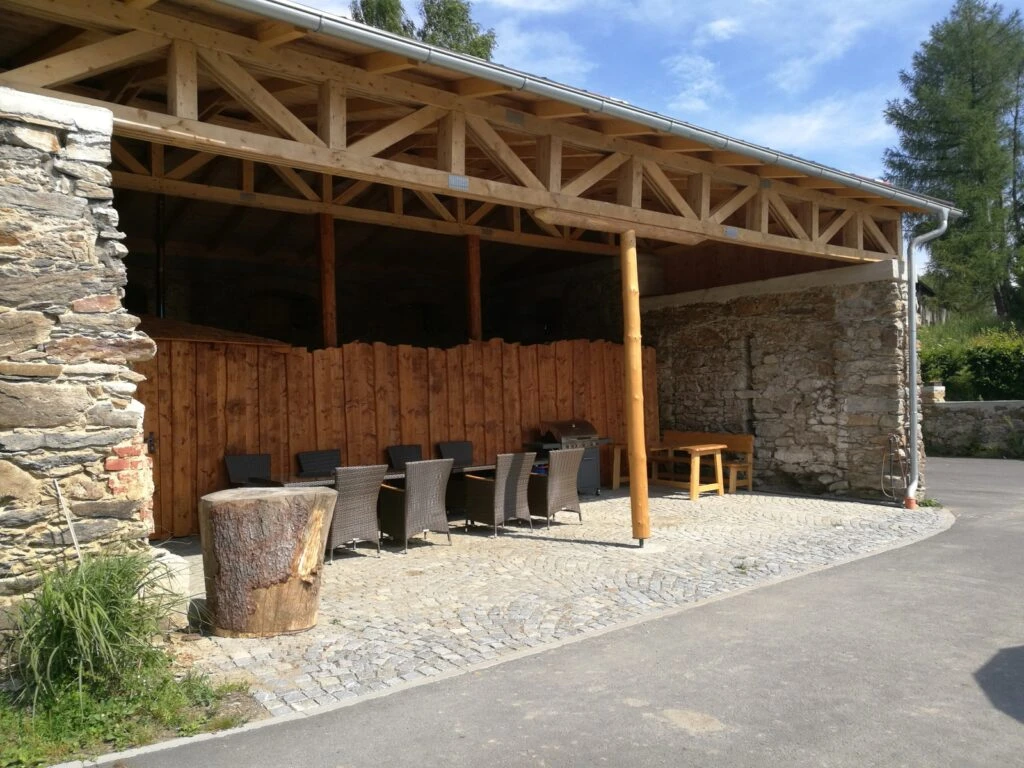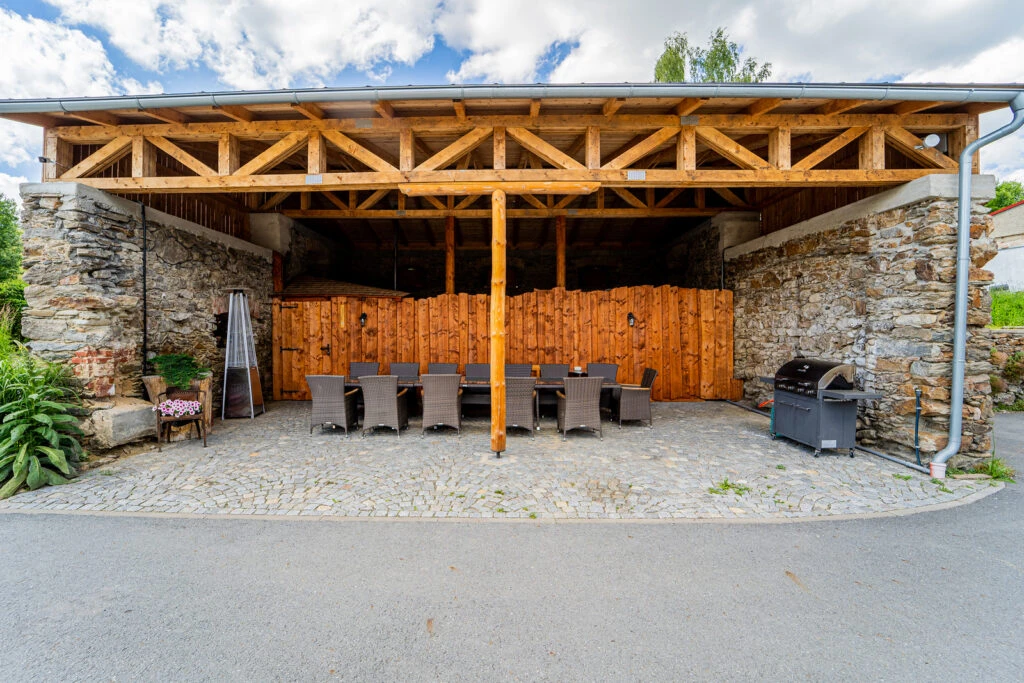 - Altán s plynovým grilem – vhodný pro společenské akce a rodinné oslavy.