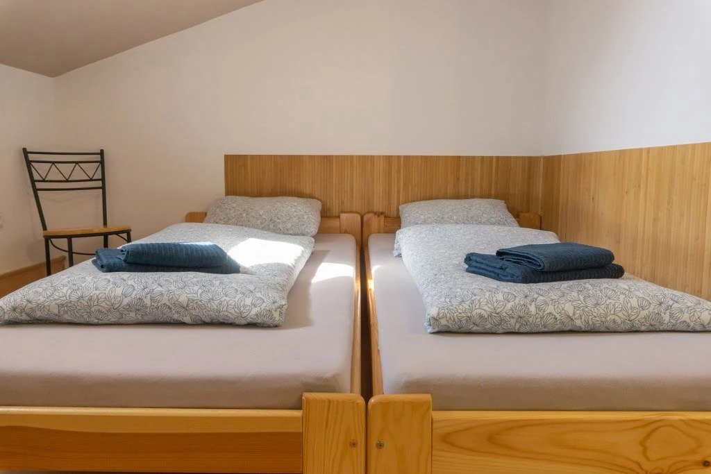 - 1x apartmán pro 8 osob se dvěma ložnicemi – v jedné manželská postel, ve druhé dvě oddělená lůžka a patrová postel