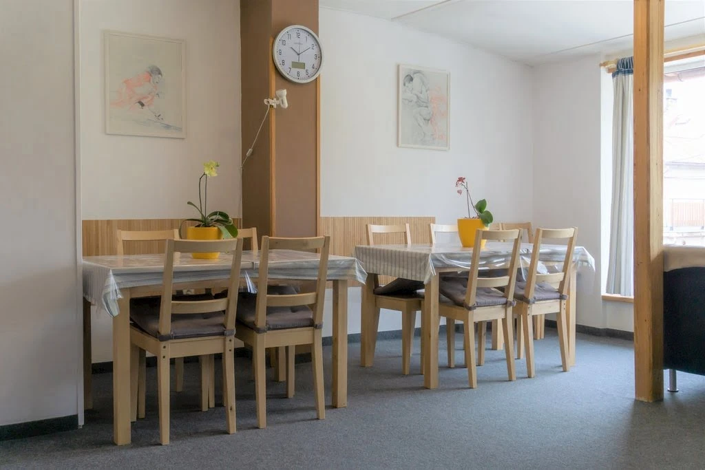 K dispozici je společenská místnost s televizí, posezením a hrami. Dále můžete využívat společnou kuchyni, která je plně vybavená a zařízená pro vaši každodenní přípravu jídel.